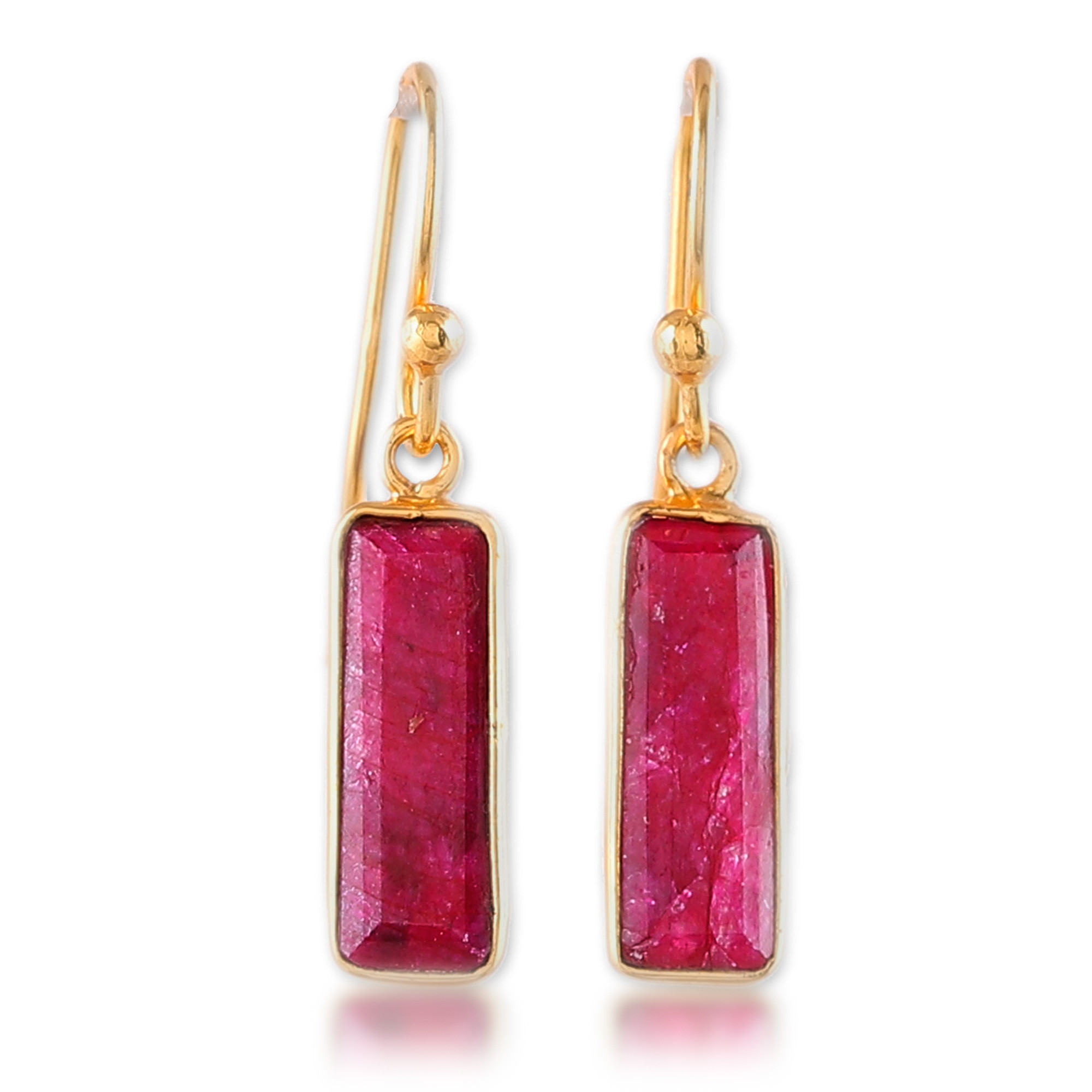 18k Gold-Plated Dangle Earrings with Ruby Gems from India, 'Vibrant Glam'