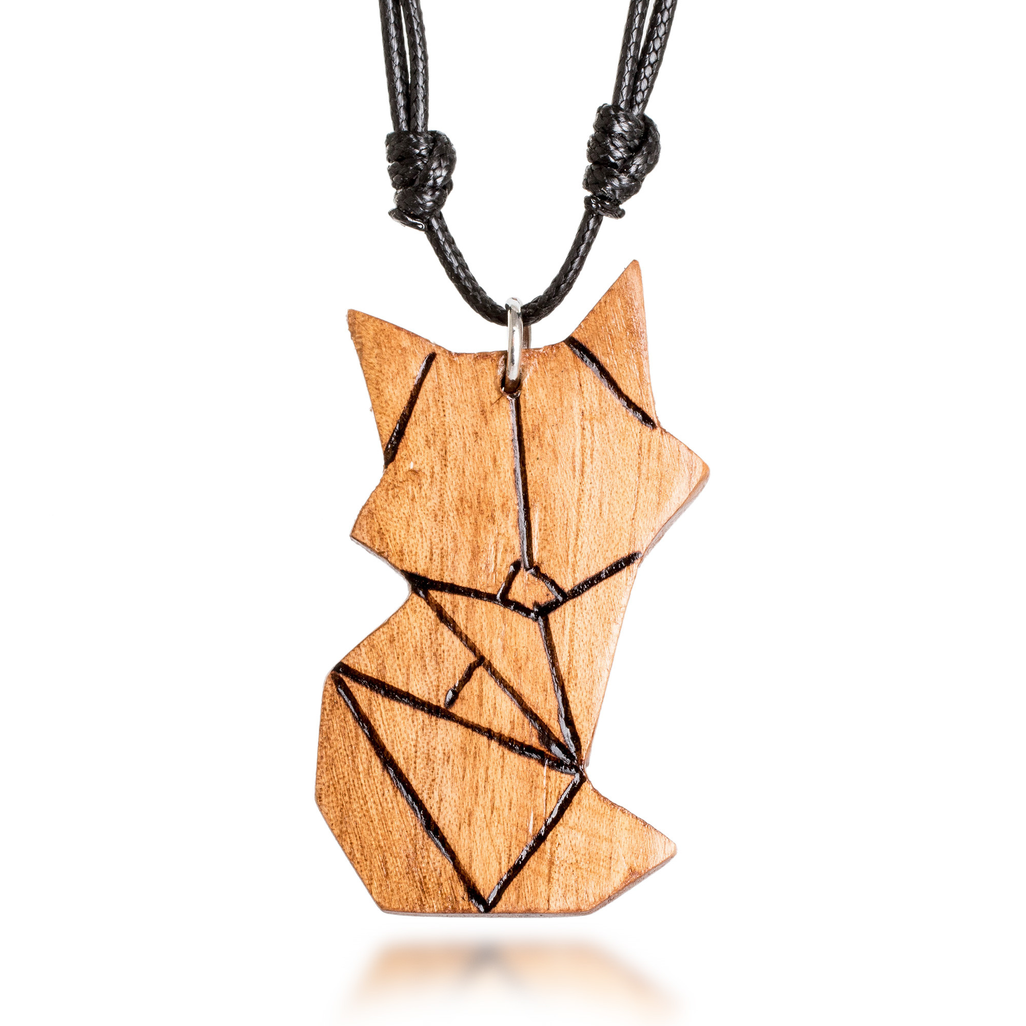 Abstract Cat-Themed Reclaimed Wood Pendant Necklace, 'Feline Friend'