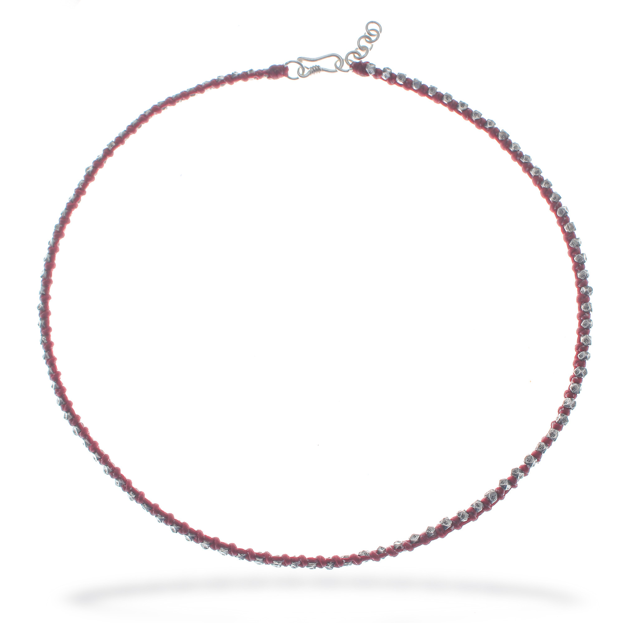 Adjustable Red Choker Necklace with Hill Tribe Silver Beads, 'Exquisite Crimson'