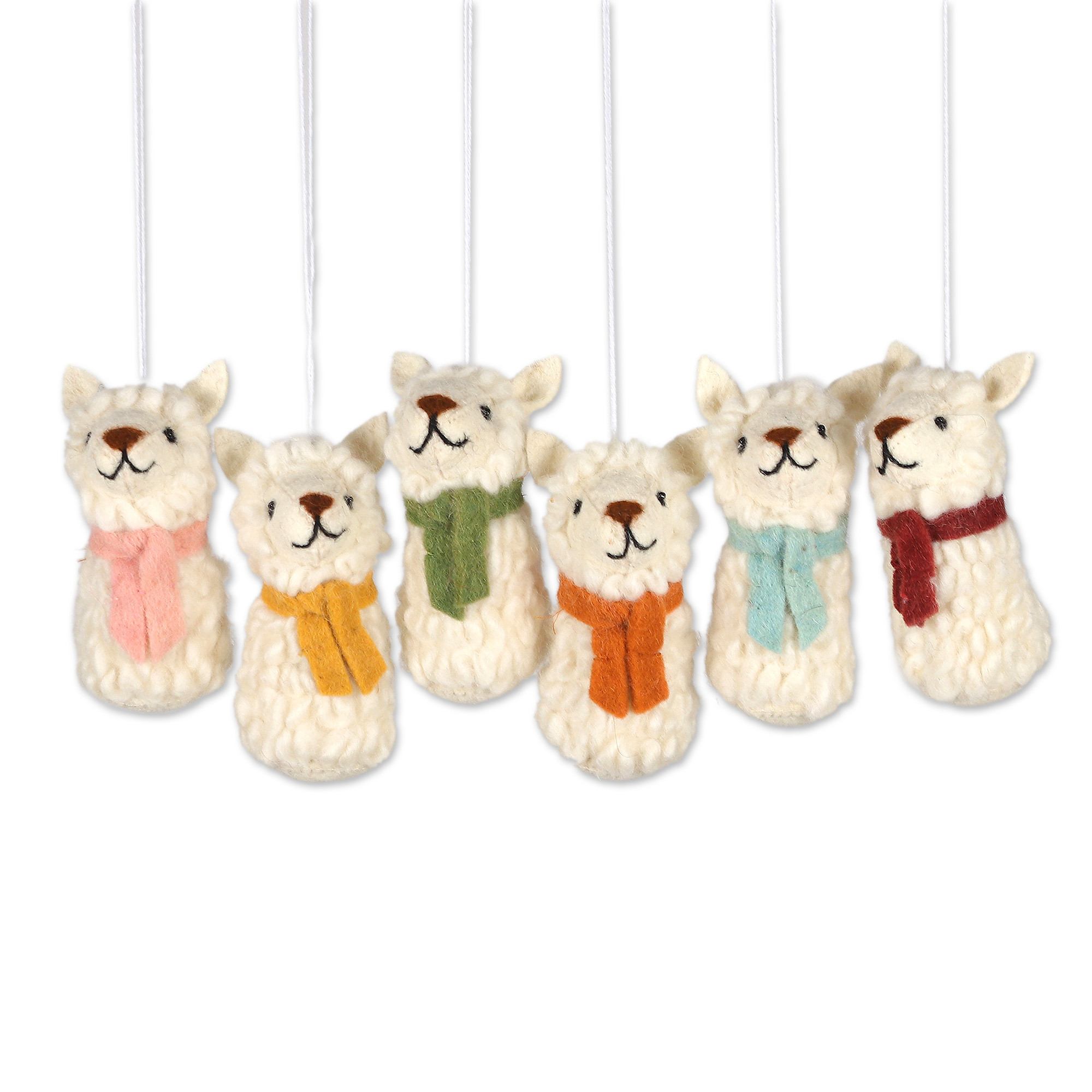 Animal-Themed Set of 6 Assorted Wool Felt Lamb Ornaments, 'Cuddly Lambs'