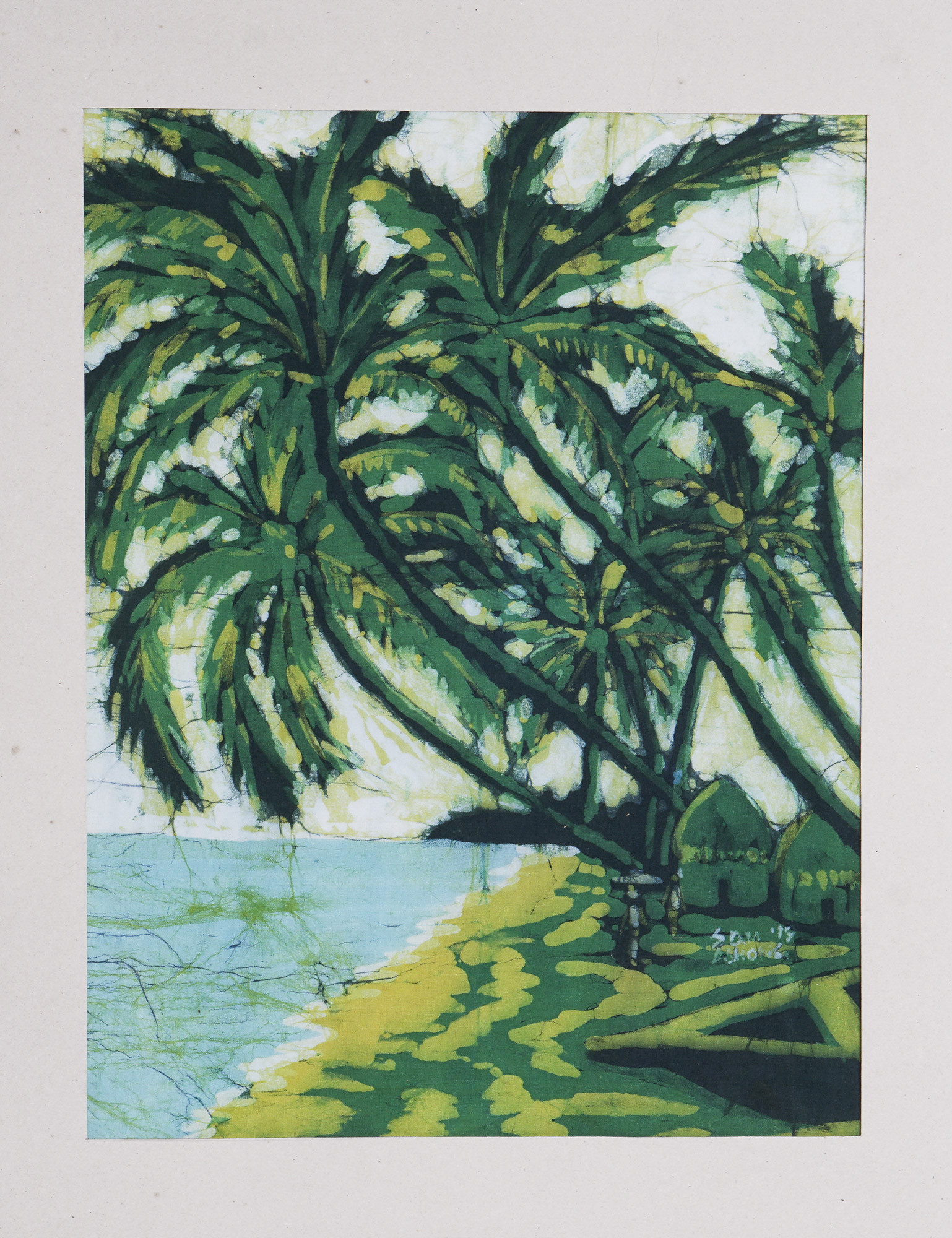 Artisan Crafted Batik Wall Art, 'At Kokrobite Beach'