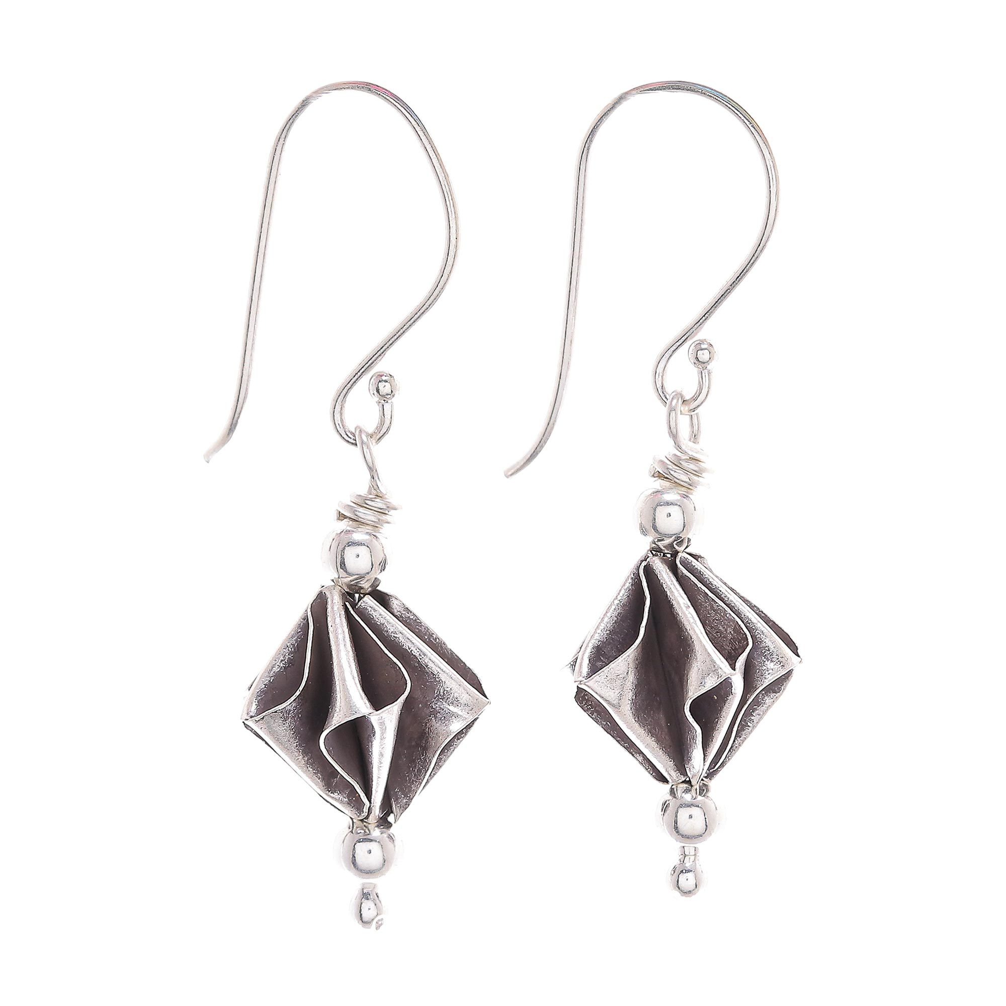 Artisan Crafted Karen Silver Dangle Earrings, 'Spin City'