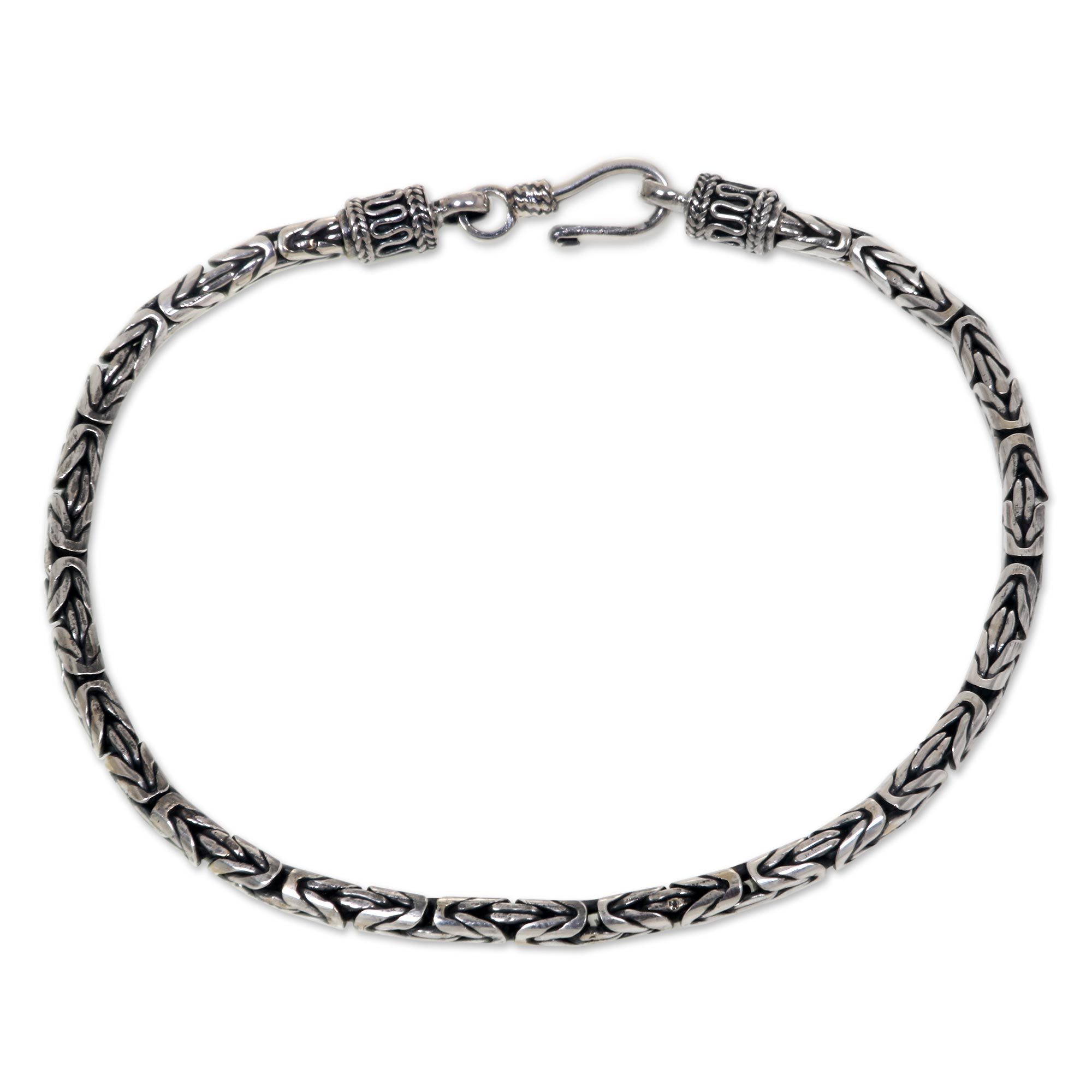 Artisan Crafted Men's Sterling Silver Chain Bracelet, 'Borobudur Collection I'
