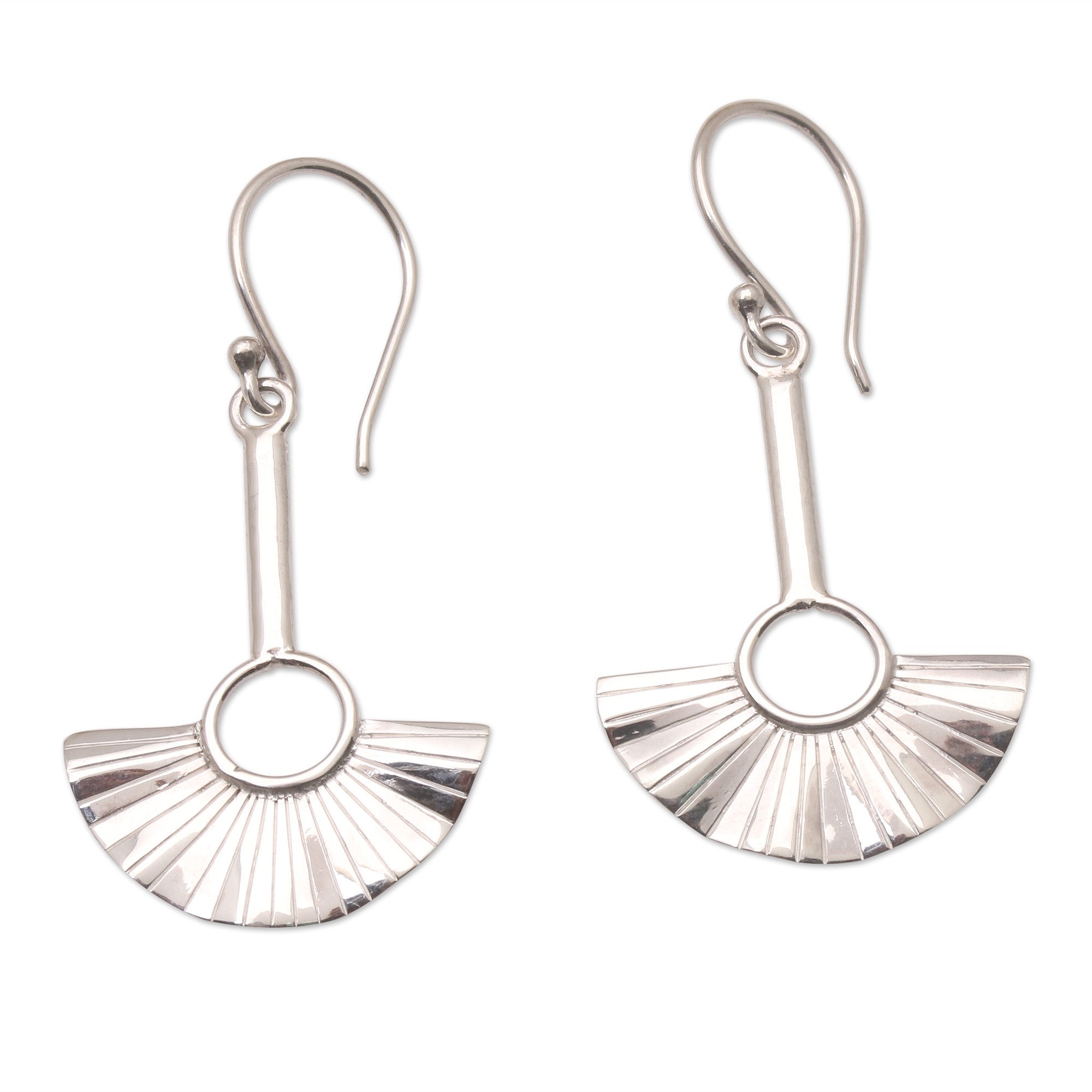 Artisan Crafted Sterling Silver Dangle Earrings, 'Handheld Fan'