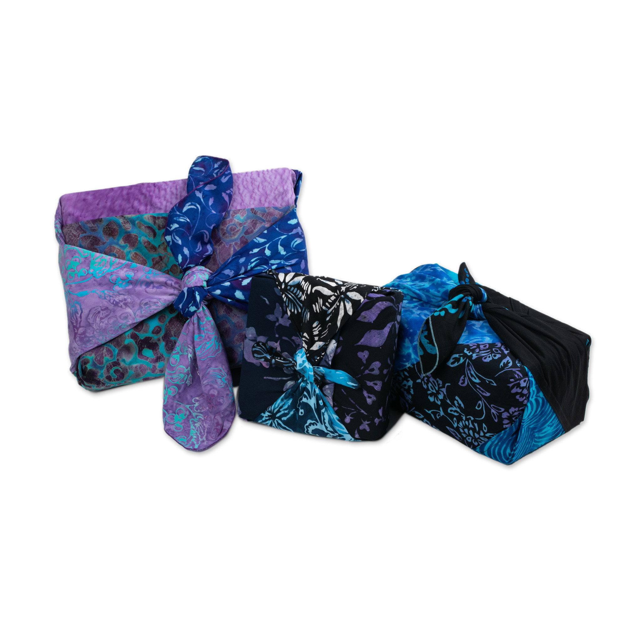 Balinese-Crafted Set of 3 Rayon Furoshiki-Style Gift Wraps, 'Holiday Night'