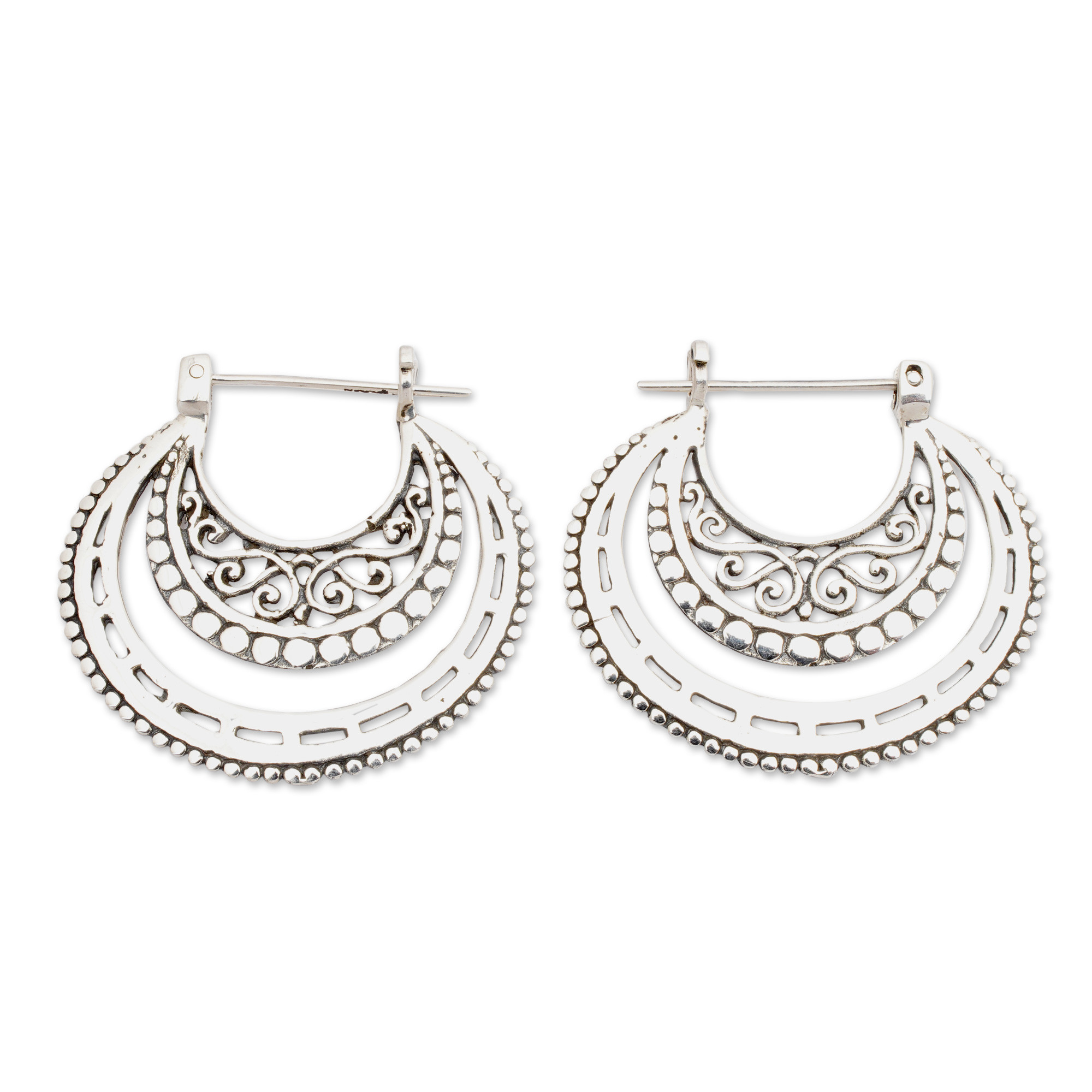 Balinese Sterling Silver Hoop Earrings, 'Amazing Curves'