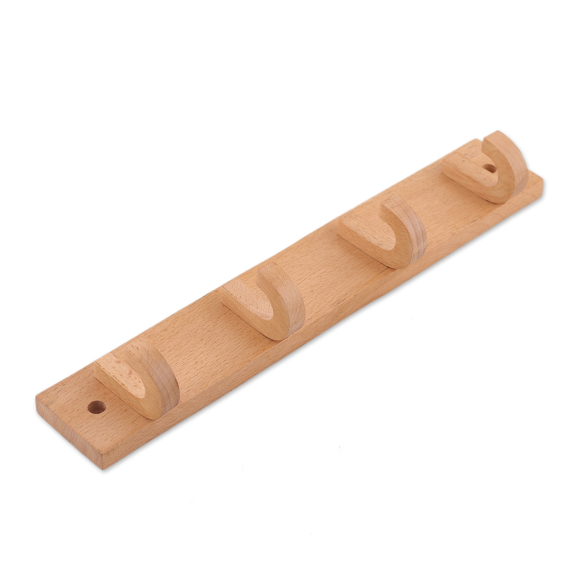 Beech Wood Coat Rack with Natural Finish from India, 'Chic Aesthetics'