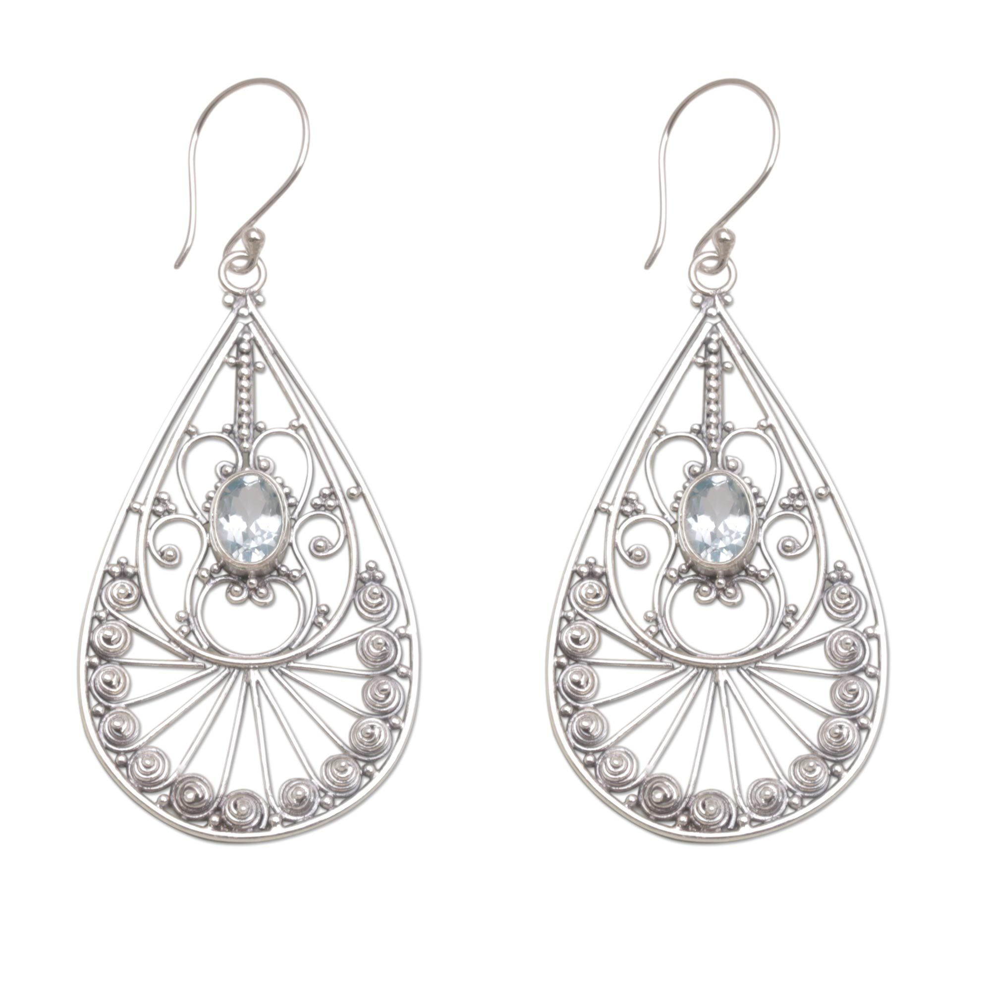Blue Topaz and Sterling Silver Dangle Earrings from Bali, 'Divine Tears'