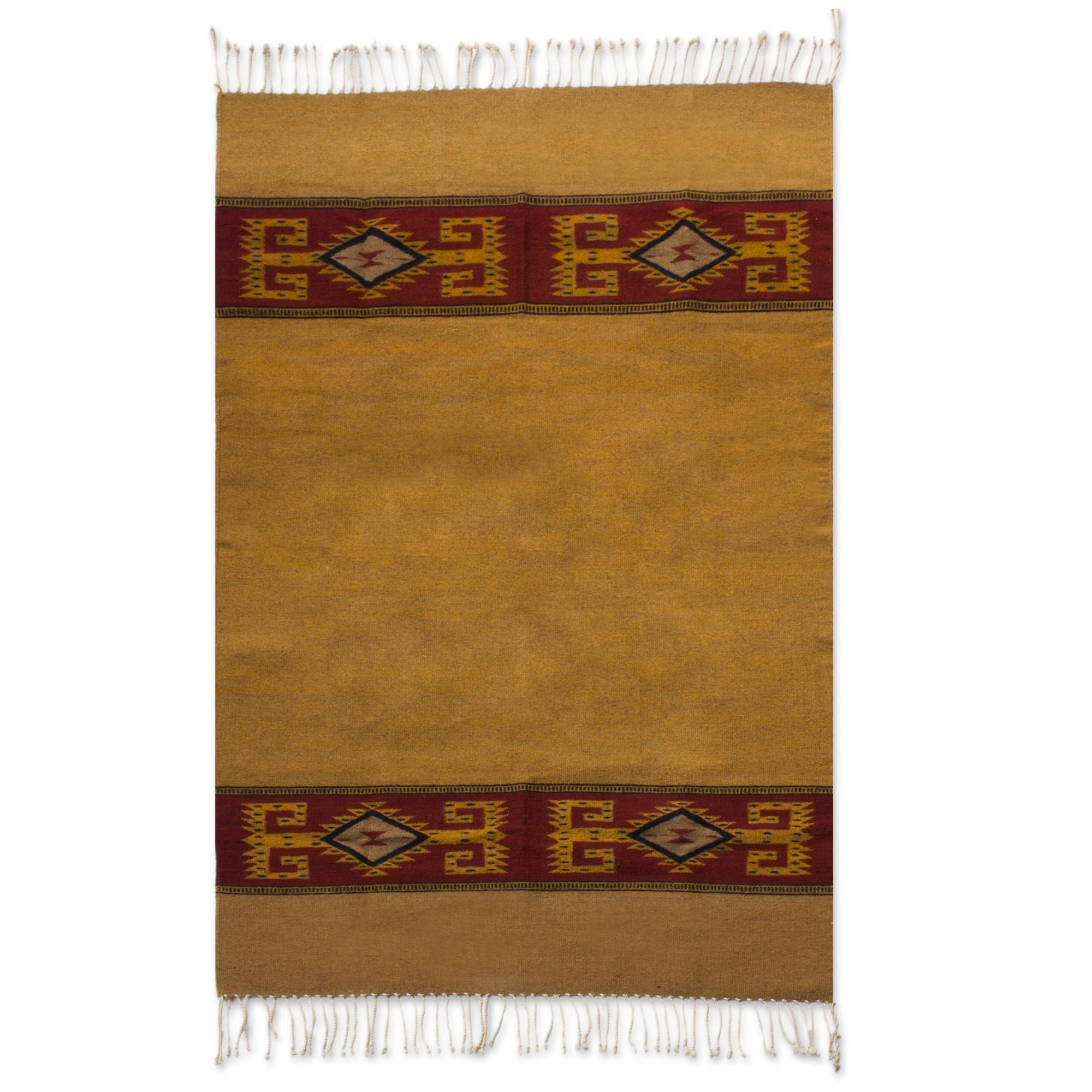 Brown and Yellow Handwoven Zapotec Area Rug (4x6.5), 'Four Suns'