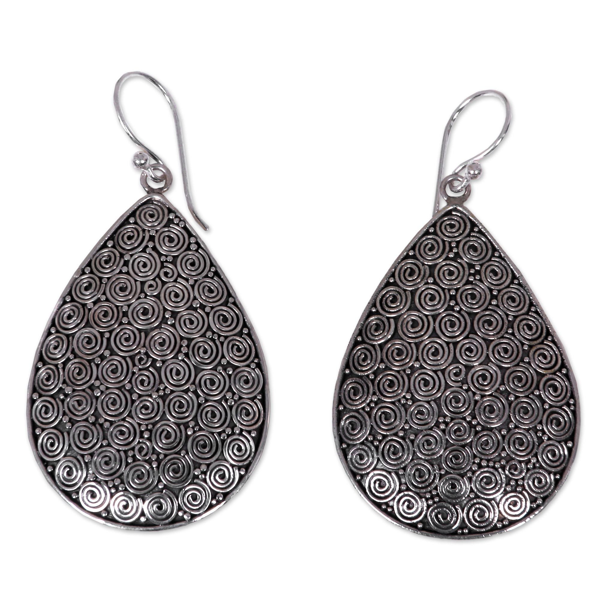 Buddha Theme Sterling Silver Earrings Handcrafted in Bali, 'Buddha's Curls'