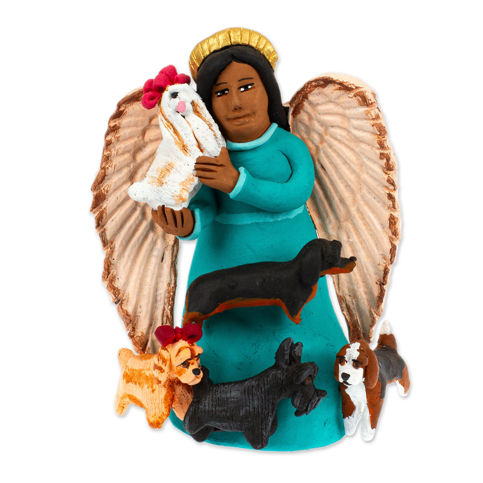 Ceramic Sculpture of Angel with Dogs Painted by Hand, 'Angel with Dogs'
