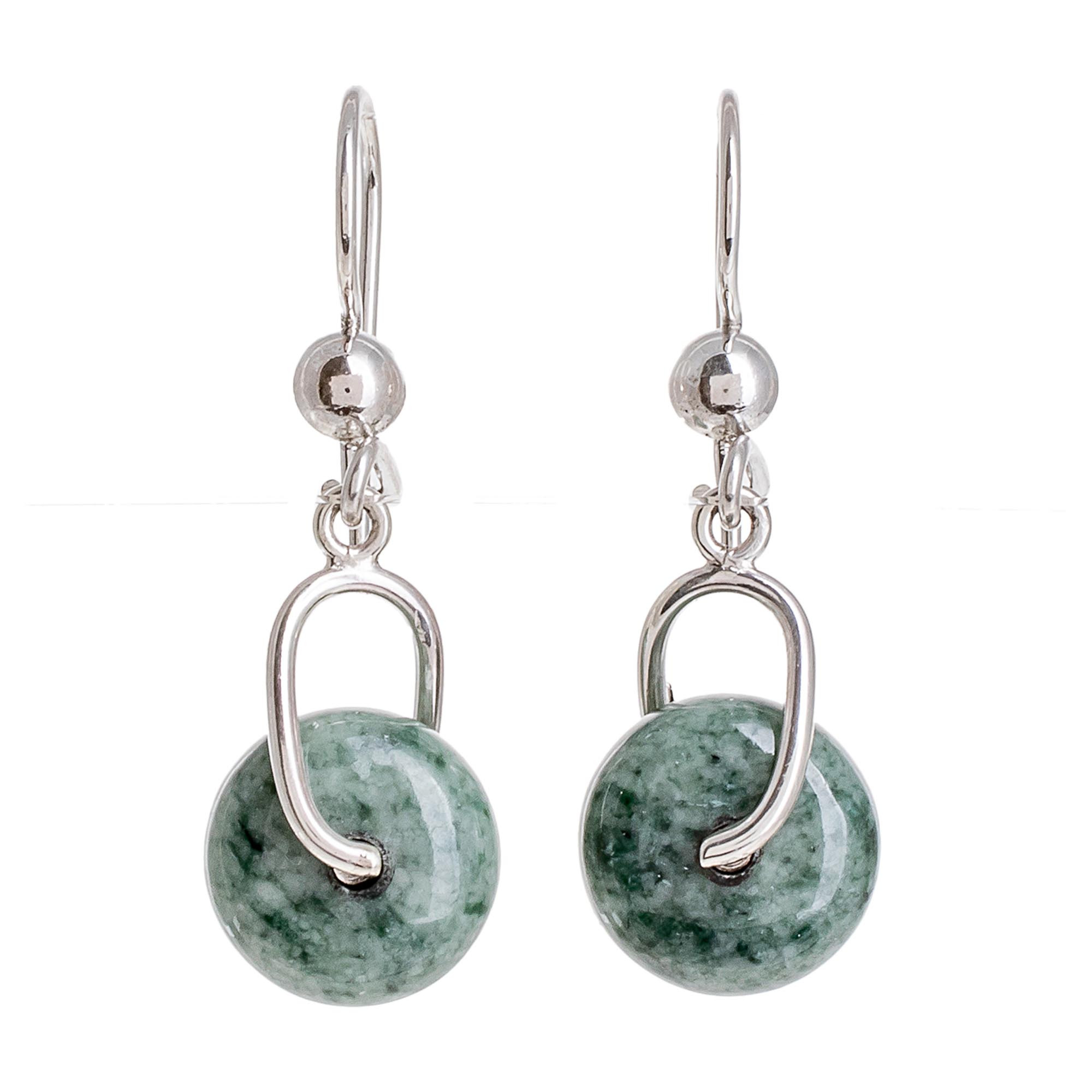 Circular Light Green Jade Dangle Earrings from Guatemala, 'Light Green Wheel of Fortune'