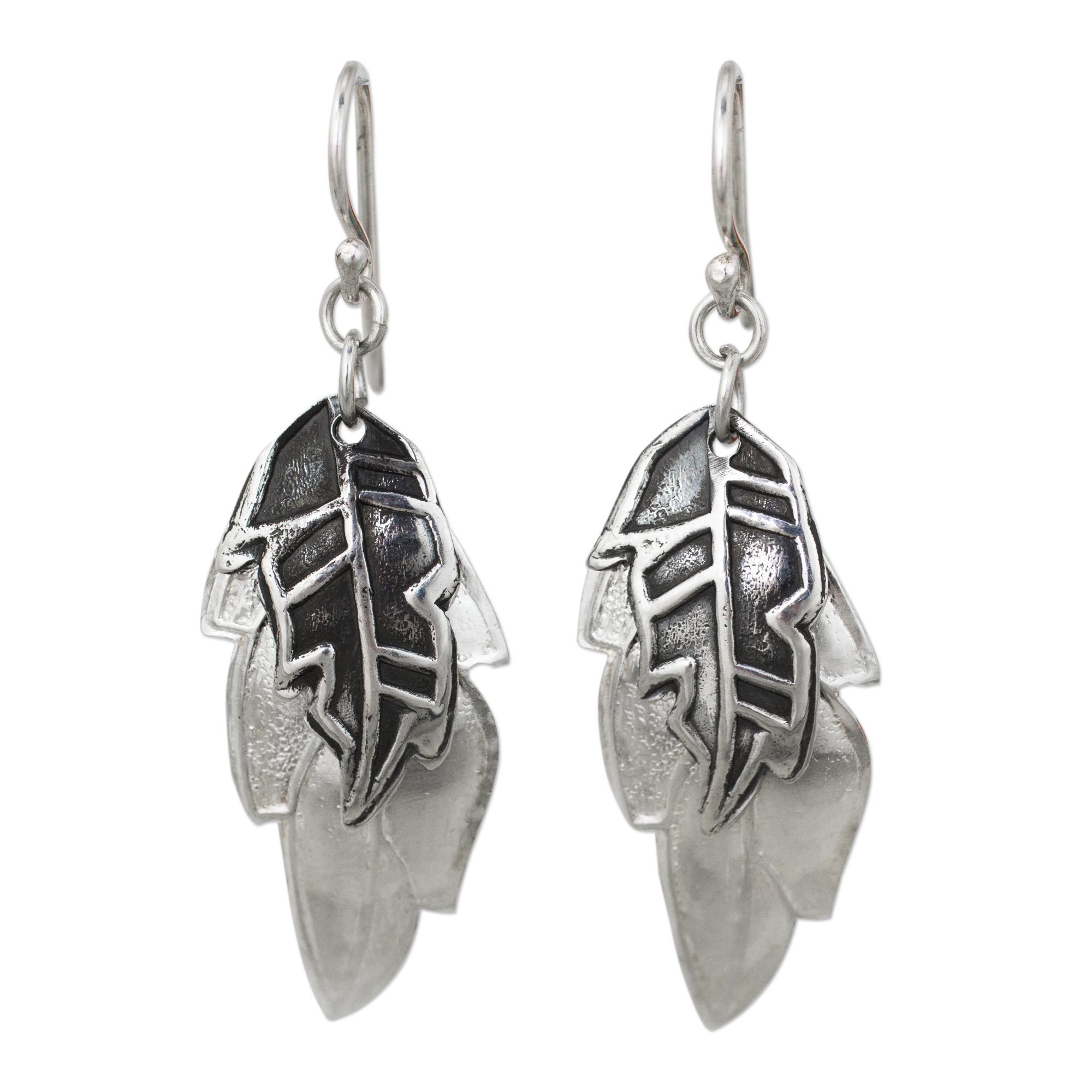 Double Exotic Leaf Earrings Handmade in 925 Sterling Silver, 'Exotic Leaf Shadows'