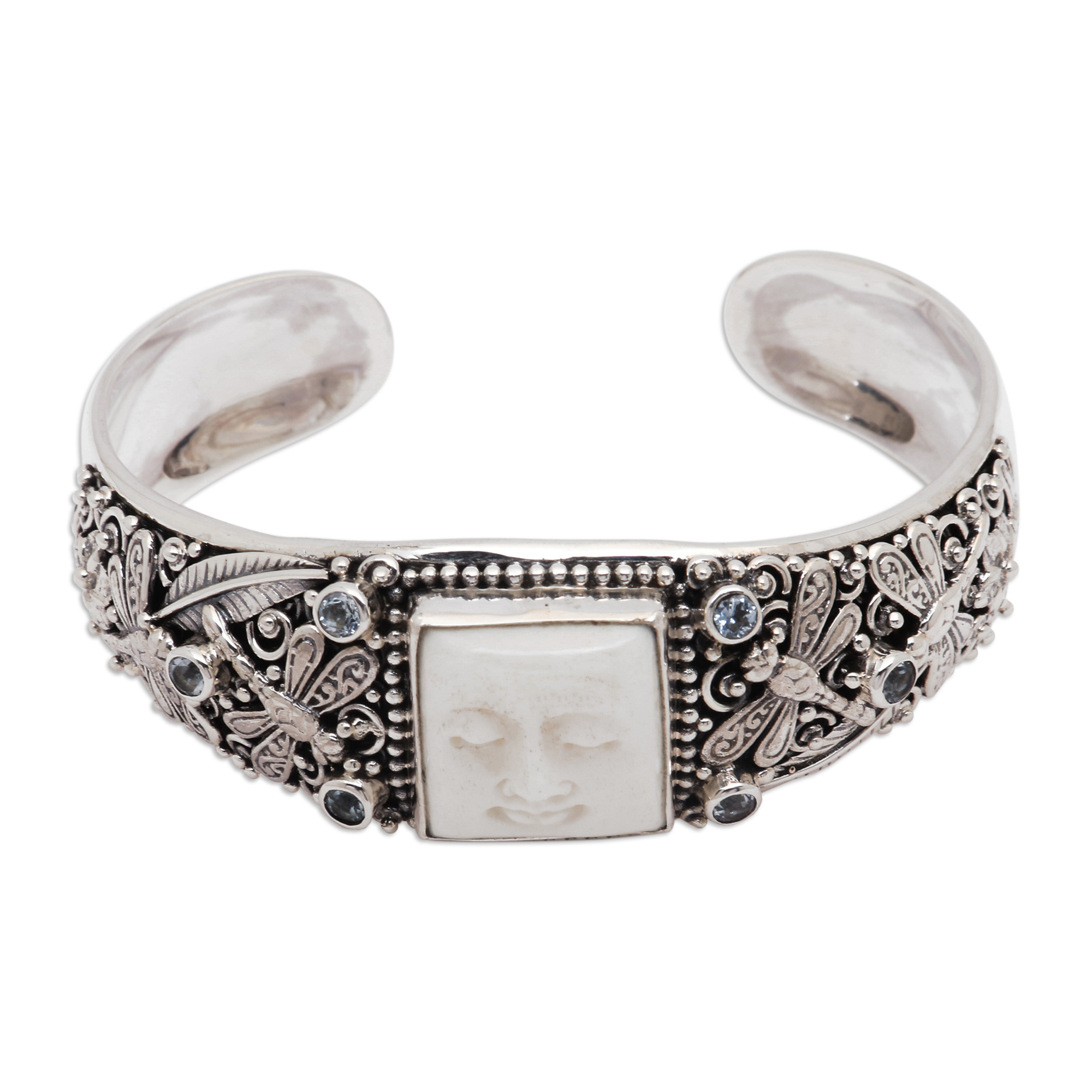 • Blue topaz cuff bracelet, 'Dragonfly Heaven' - Dragonfly-Themed Faceted Four-Carat Blue Topaz Cuff Bracelet (image 2e) thumbail