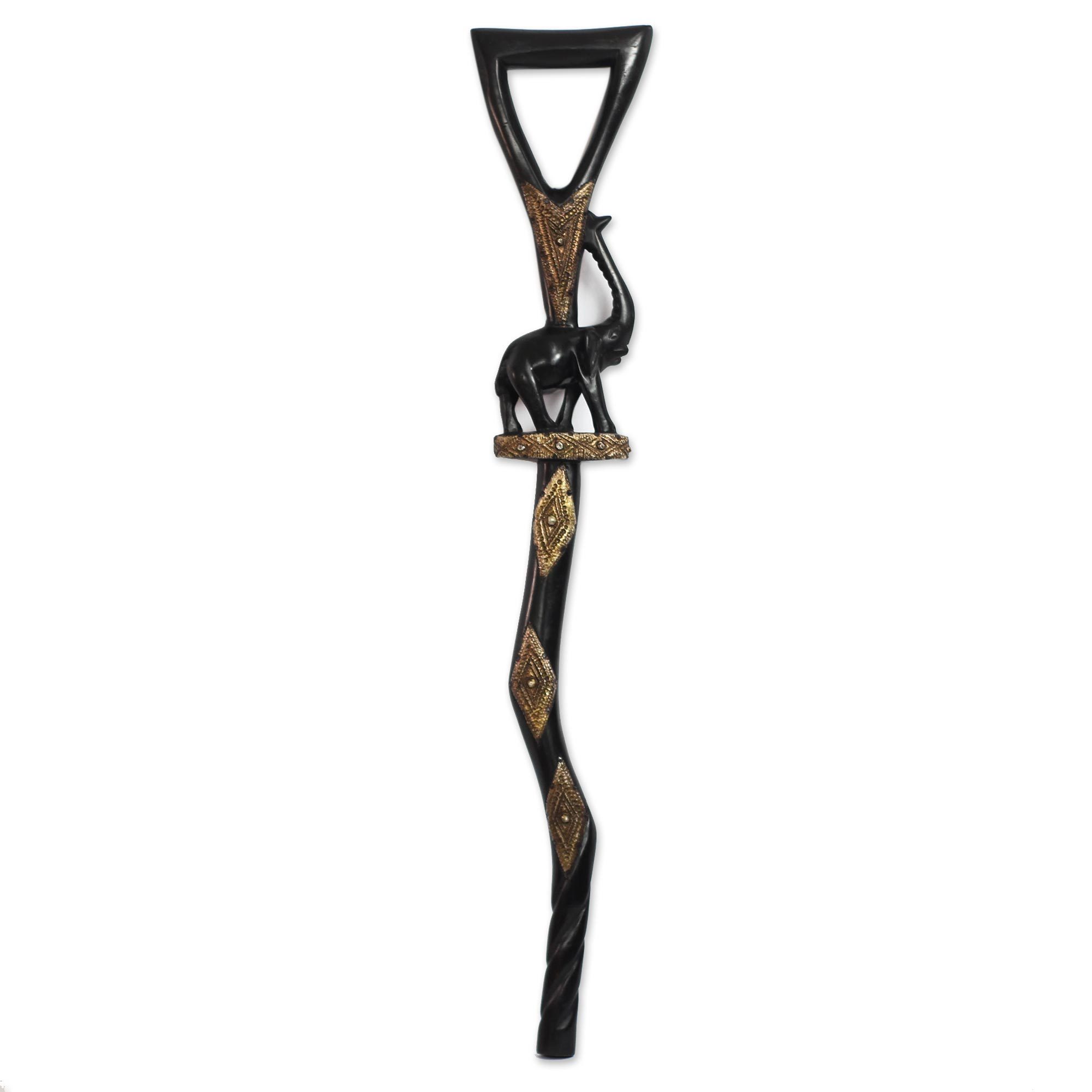• Wood walking stick, 'Strolling Elephant' - Elephant-Themed Wood and Aluminum Walking Stick from Ghana (image 2) thumbail
