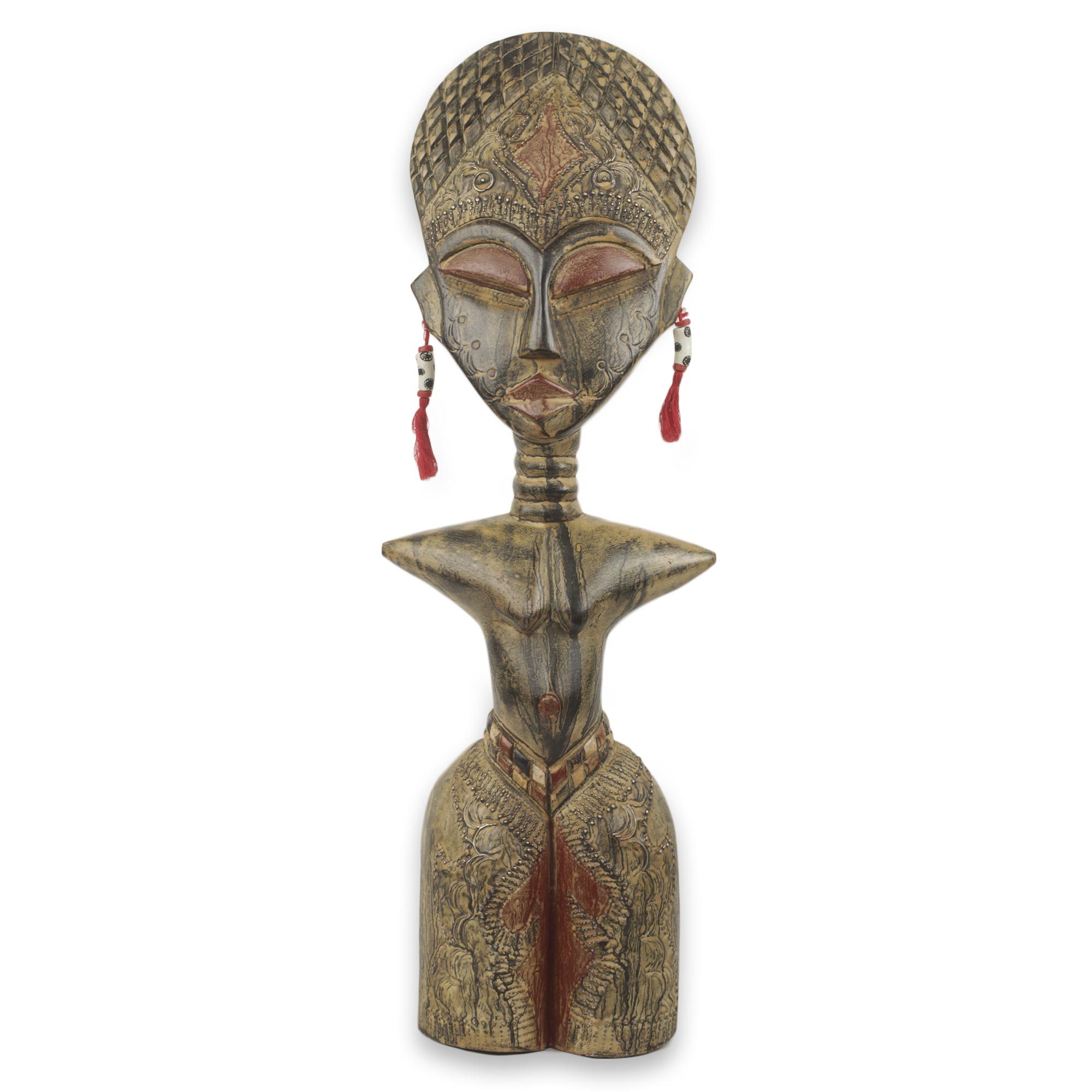 Ewe Tribe Woman African Wood Sculpture with Aluminum, 'Detugbi'