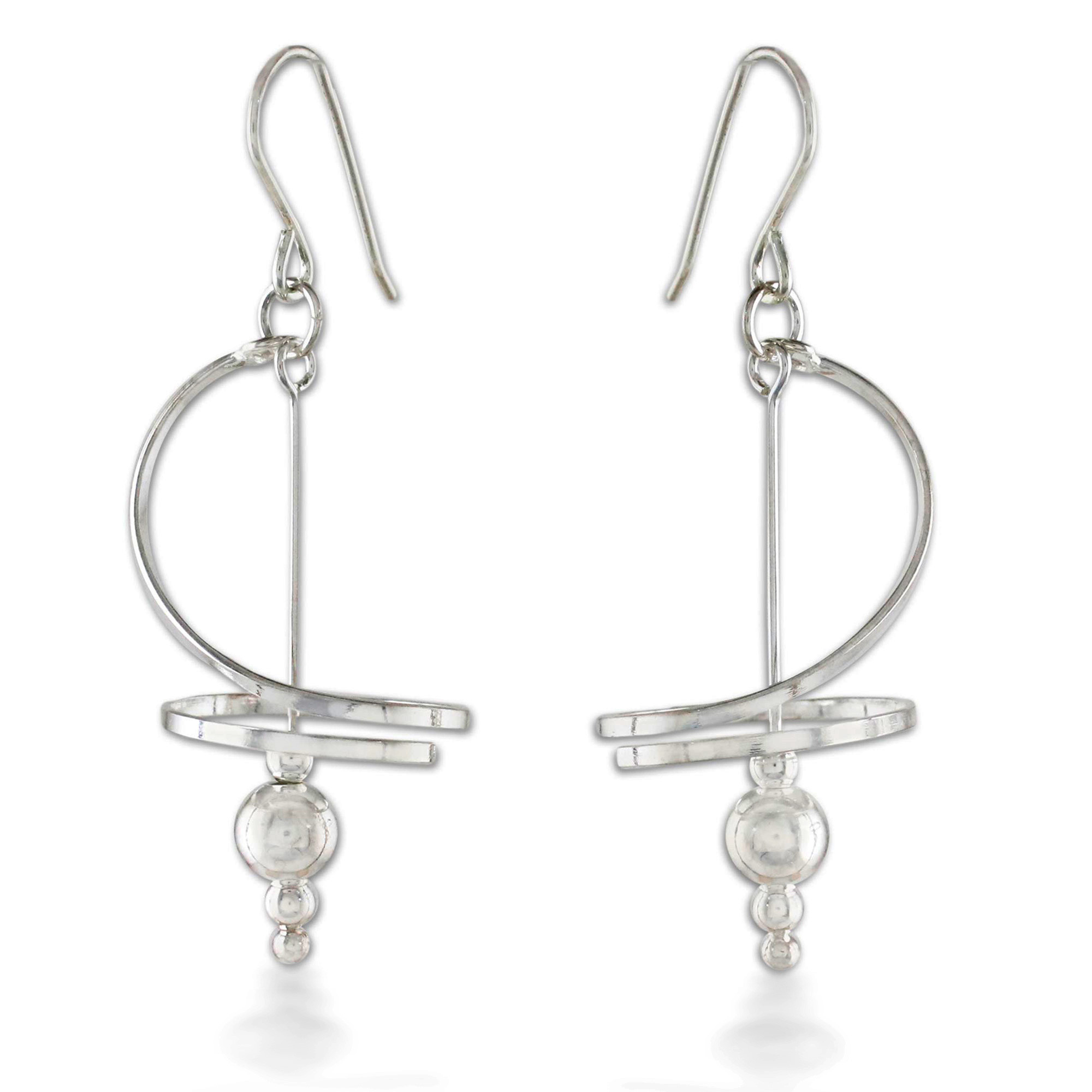 Fair Trade Modern Sterling Silver Dangle Earrings, 'Pirouette'