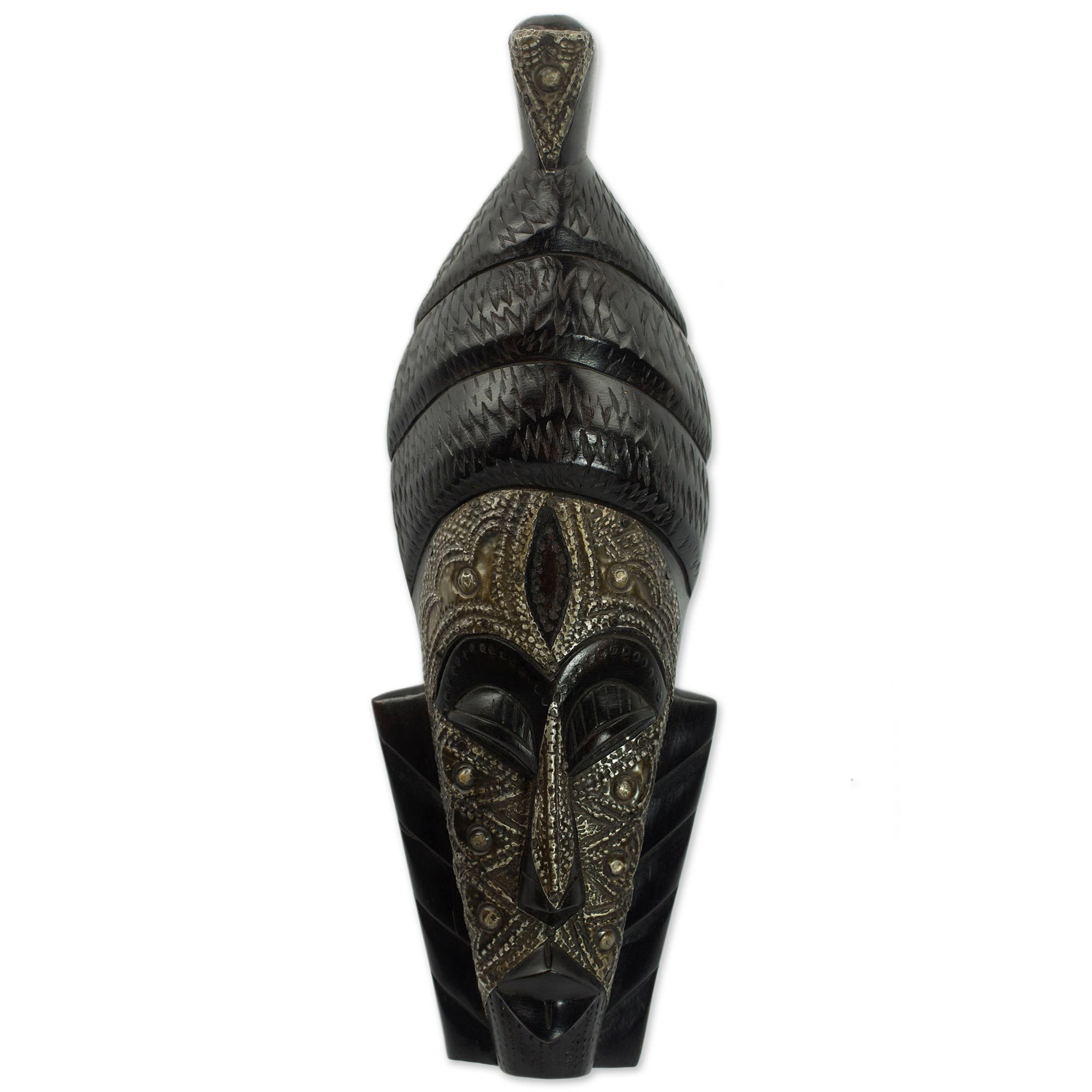 Ghana Wood Mask Hand Carved Black, 'Peace of Mind'