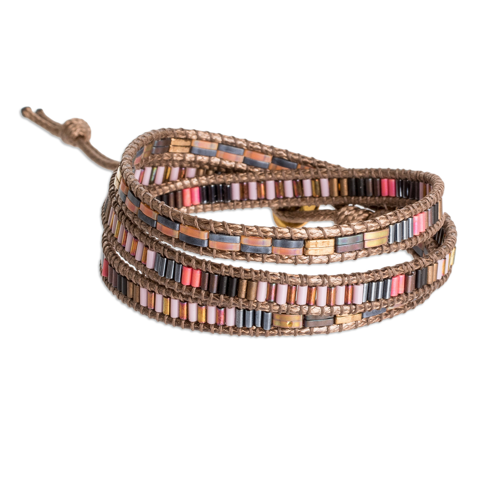 Glass Beaded Wrap Bracelet with Tibetan-Style Pewter Button, 'Laguna'