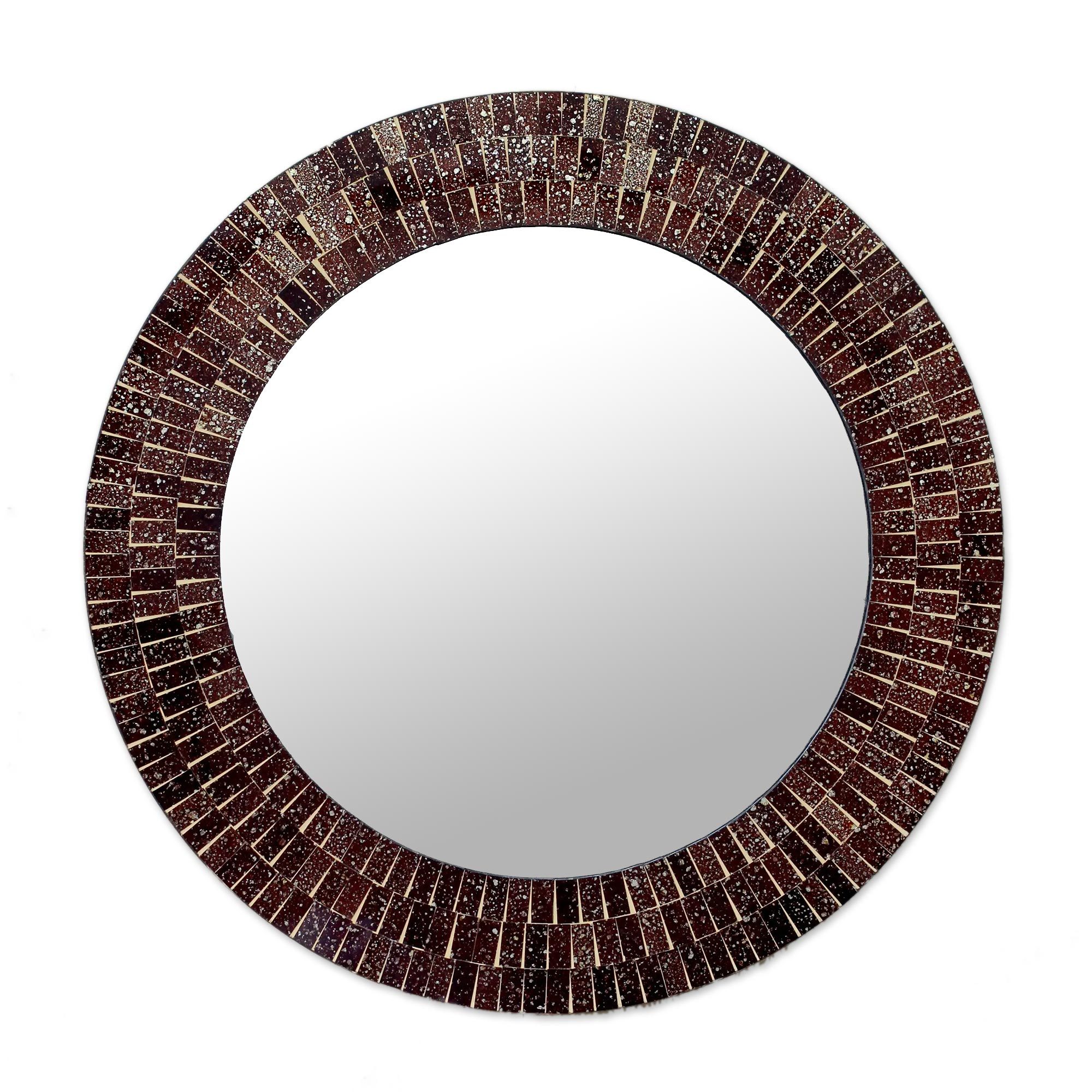 Glass Tiles Round Wall Mirror, 'Maroon Reflection'