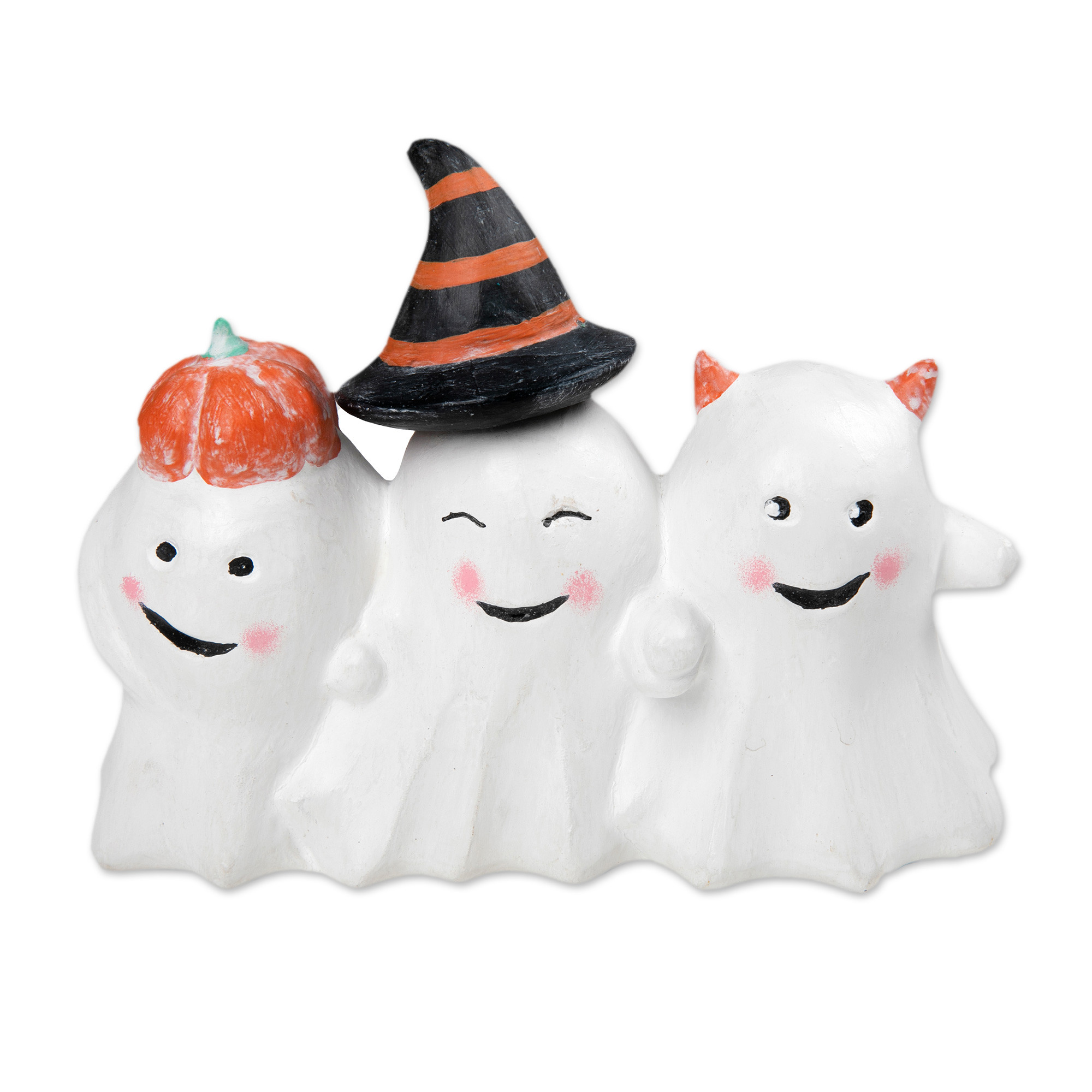 Halloween-Themed Distressed Wood Sculpture of Three Ghosts, 'Cheeky Halloween Trio'