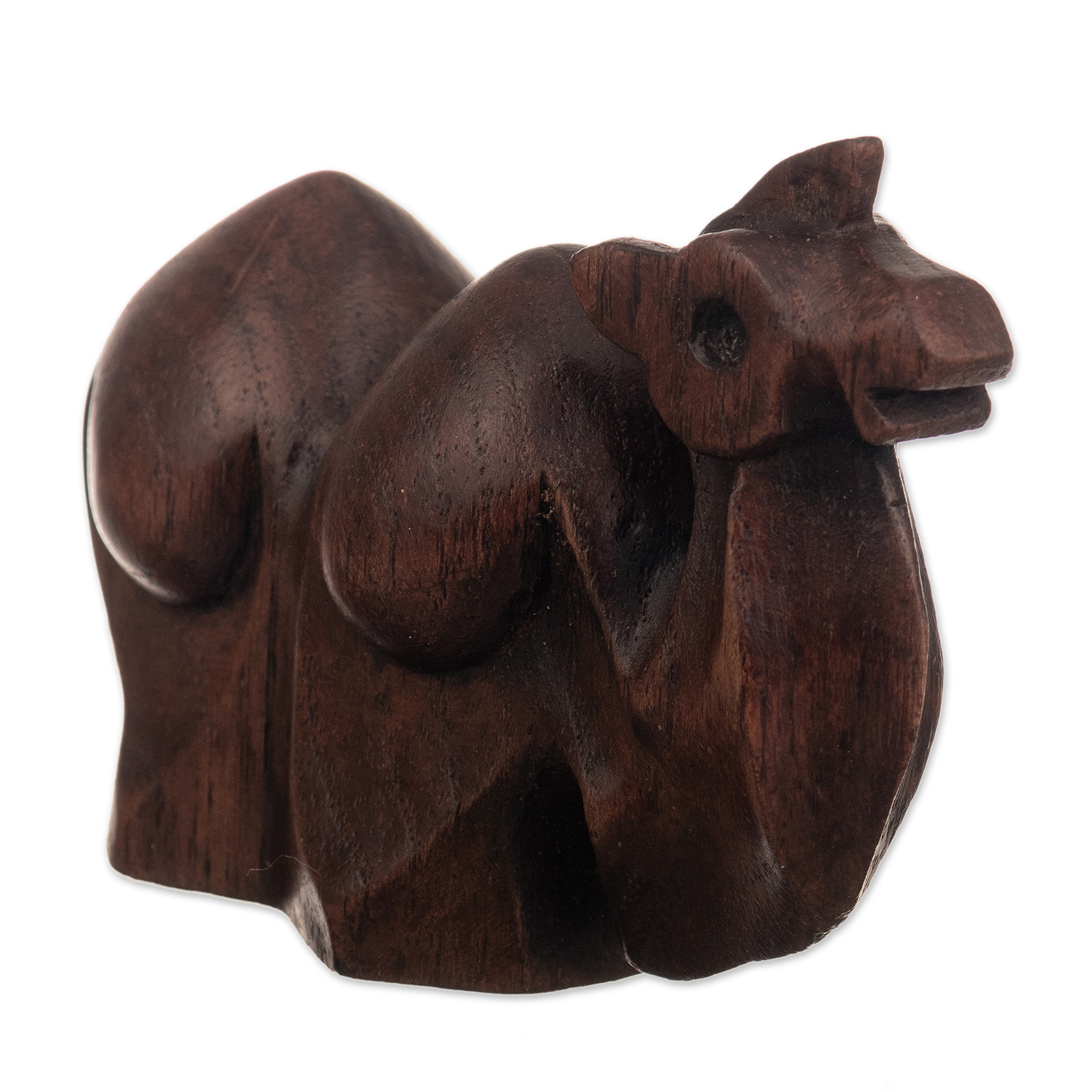 Hand-Carved Modern Brown Camel-Themed Cedarwood Figurine, 'Guardian of the Dunes'