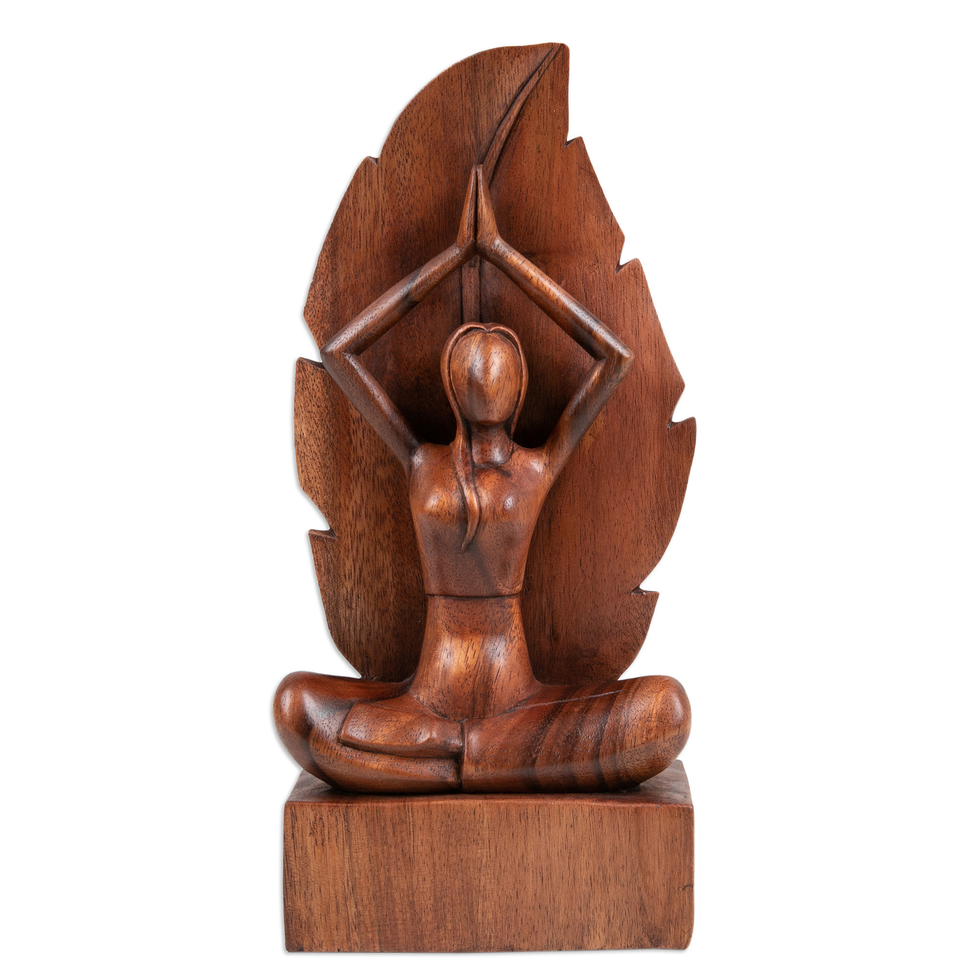 Hand-Carved Parvatasana Yoga Pose Suar Wood Sculpture, 'Parvatasana Pose'