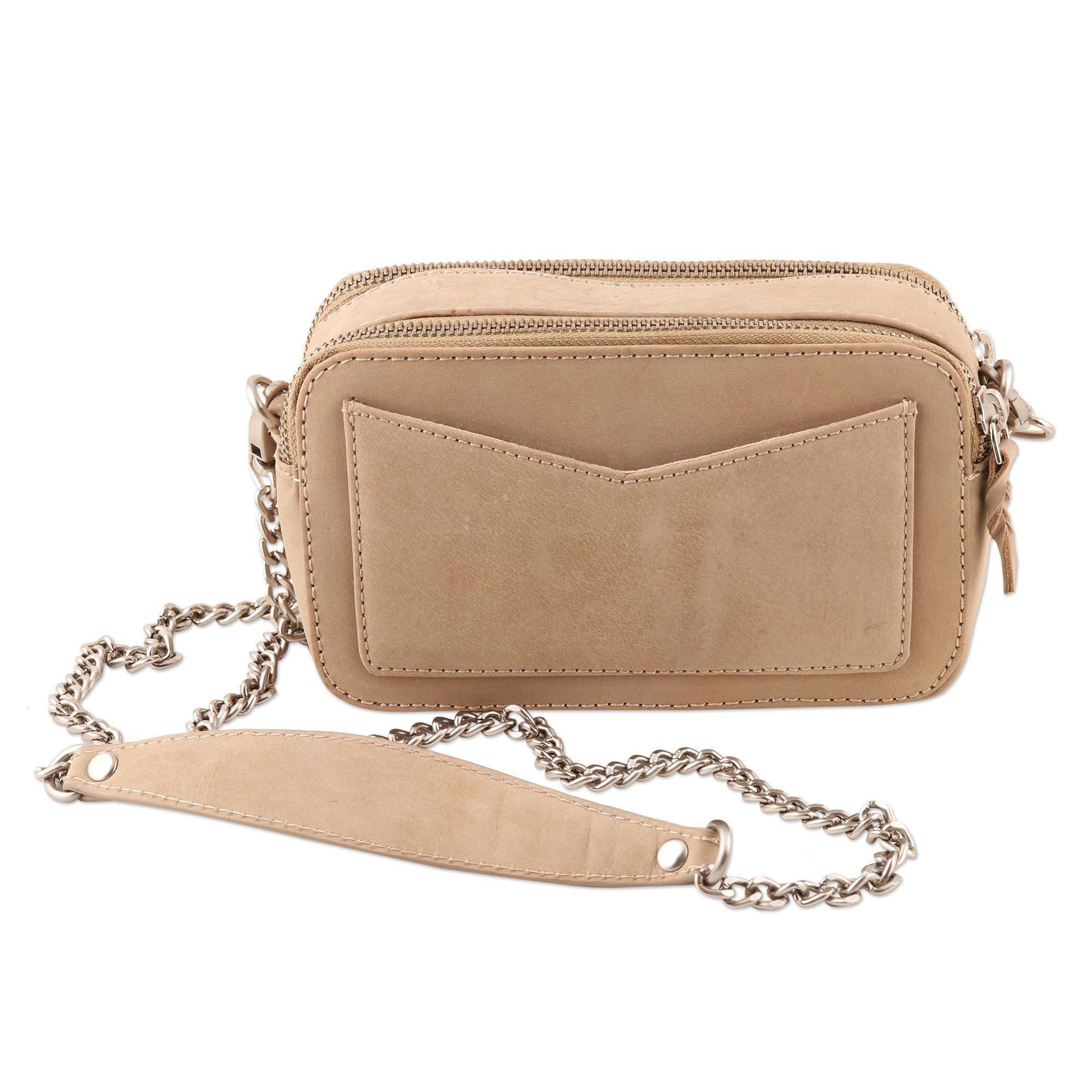 Hand Crafted Taupe Leather Sling Bag, 'Memory Lane in Taupe'