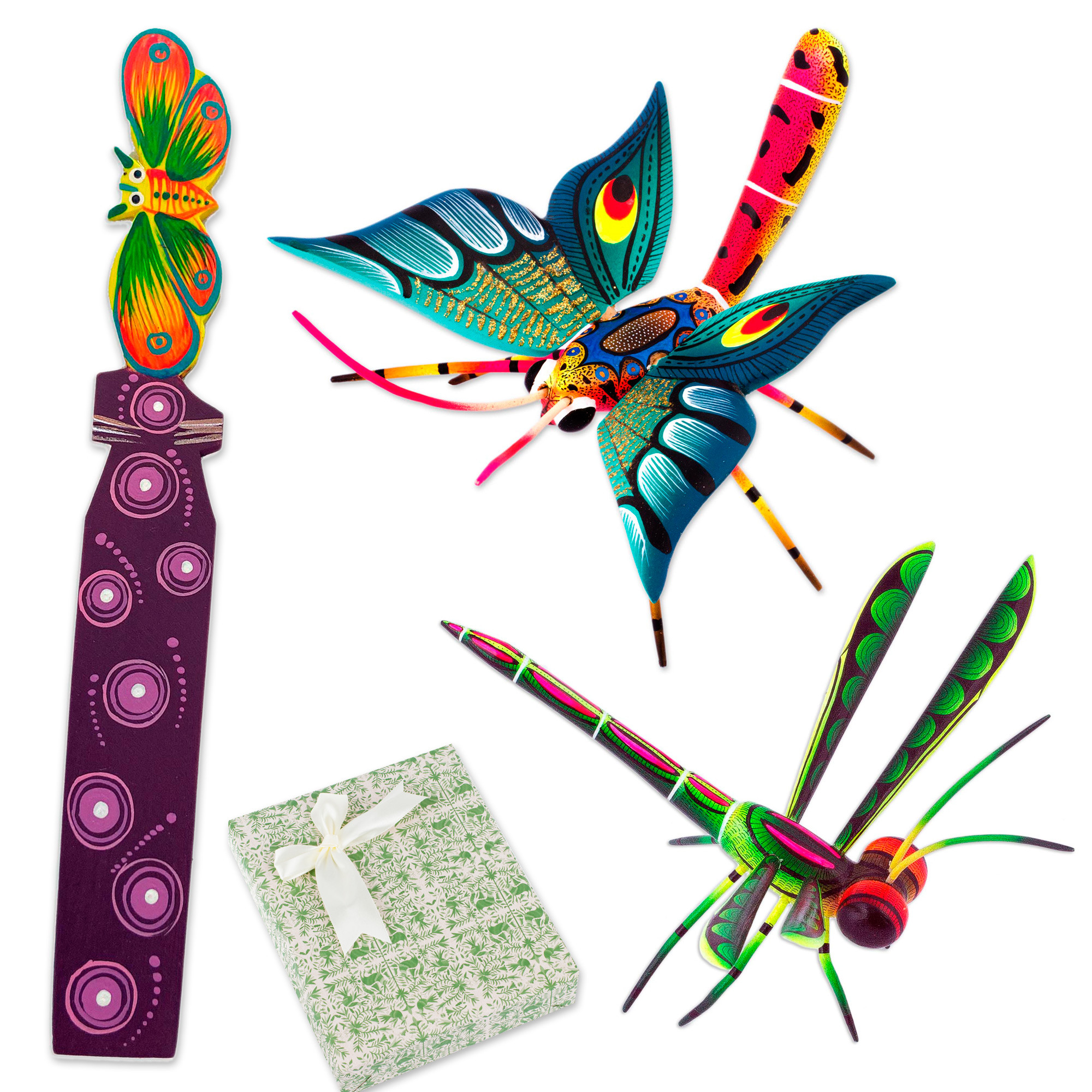 Hand-Painted Copal Wood Alebrije Curated Gift Set, 'Alebrije Nature'
