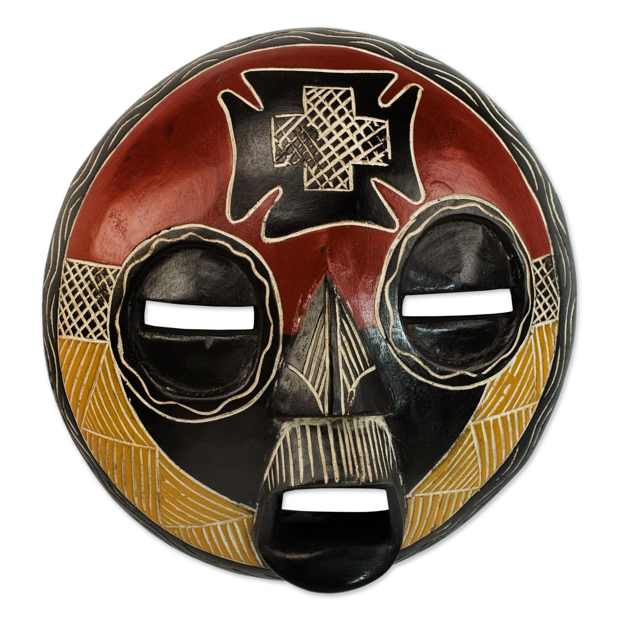 Handcrafted African Sese Wood Wall Mask from Ghana, 'Safely Home'