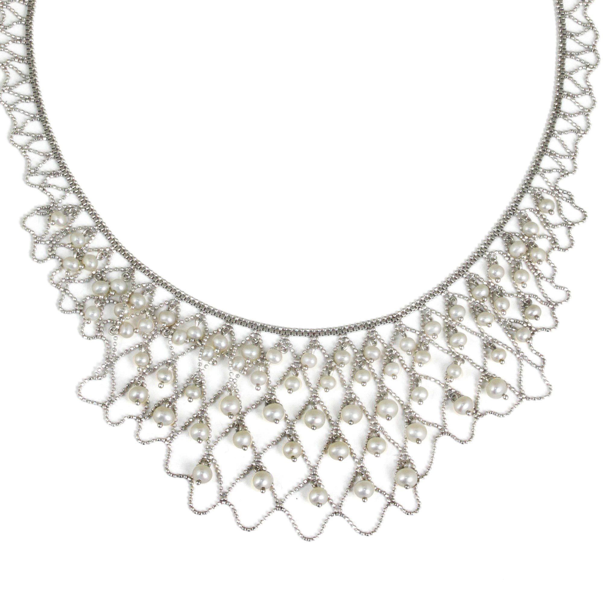 Handcrafted Cultured Pearl and Silver Statement Necklace, 'White Lily Waterfall'