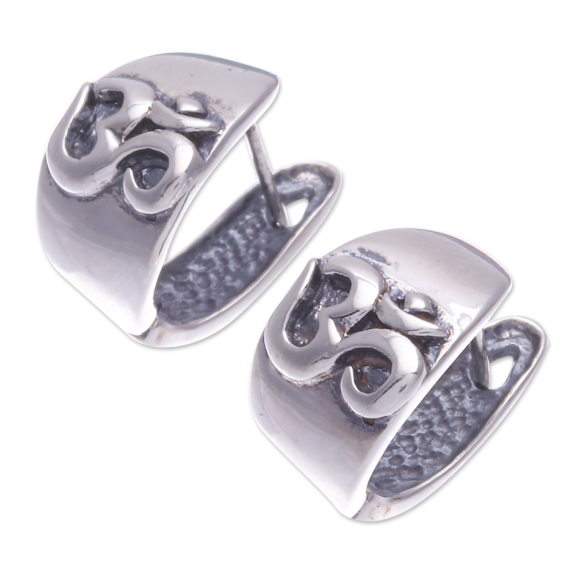 Handcrafted Sterling Silver Drop Earrings with Om Motif, 'Universal Om'