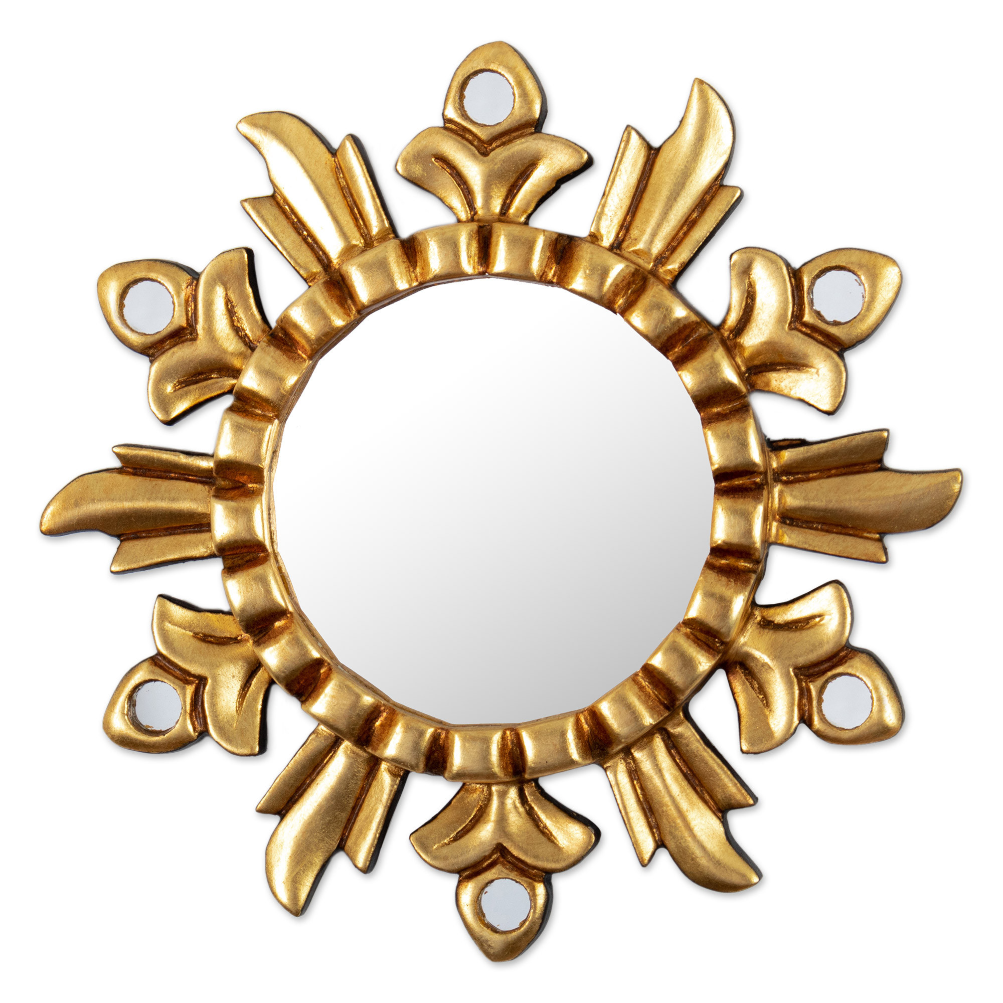 Handmade Leaf-Themed Antique Gilded Bronze Wood Wall Mirror, 'Golden Leaves'