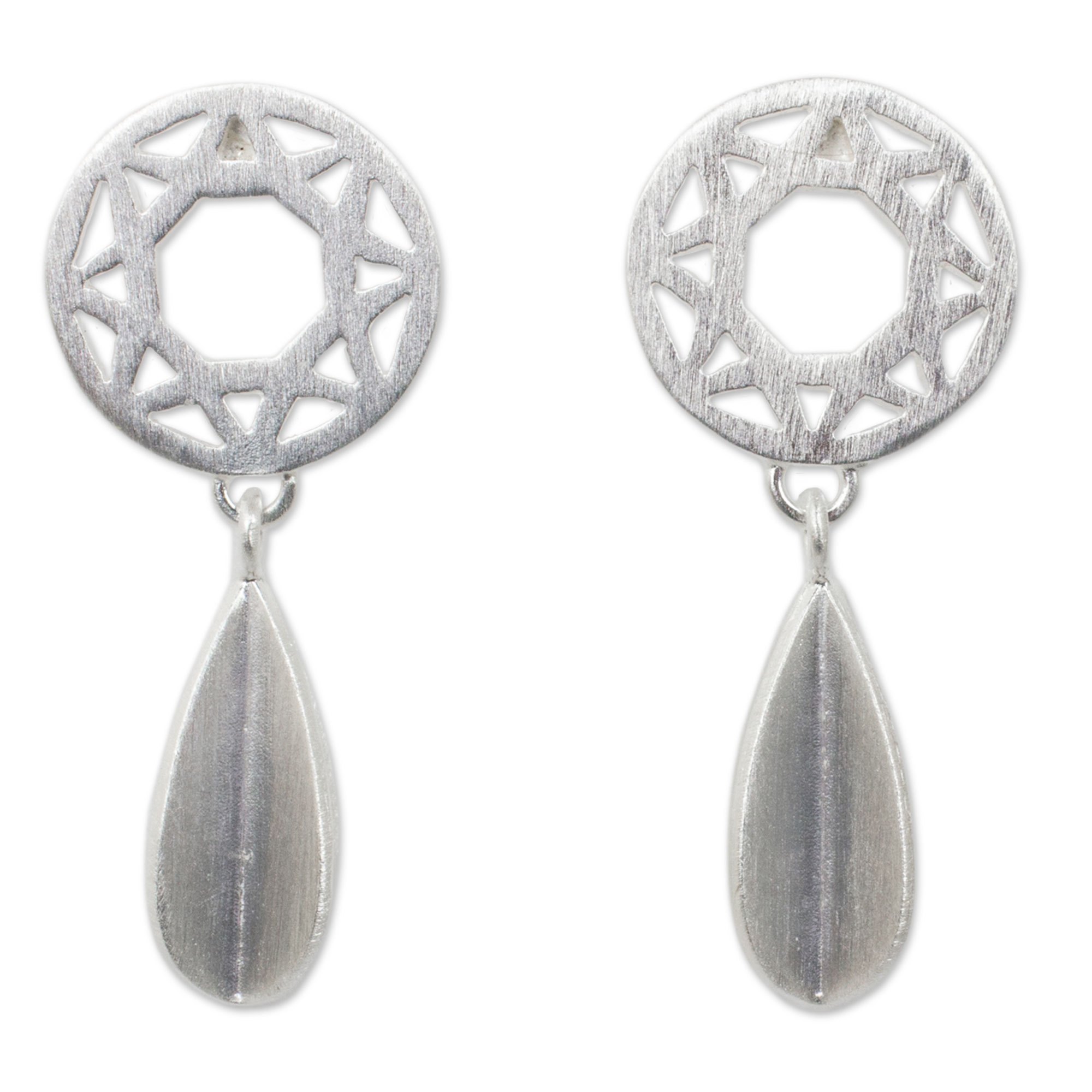 Handmade Modern Thai Sterling Silver Dangle Earrings, 'Starlight Geometry'