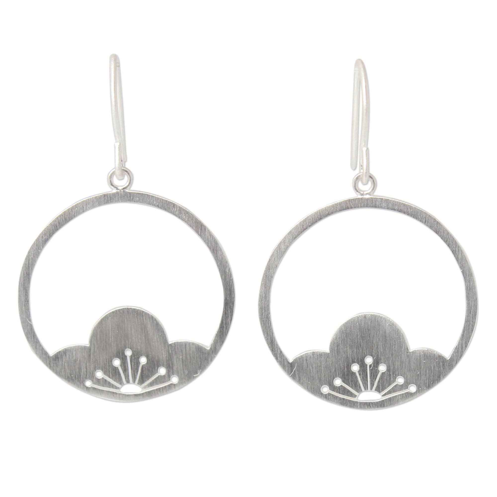 Handmade Sterling Silver Flower Earrings, 'Shy Plum Blossoms'