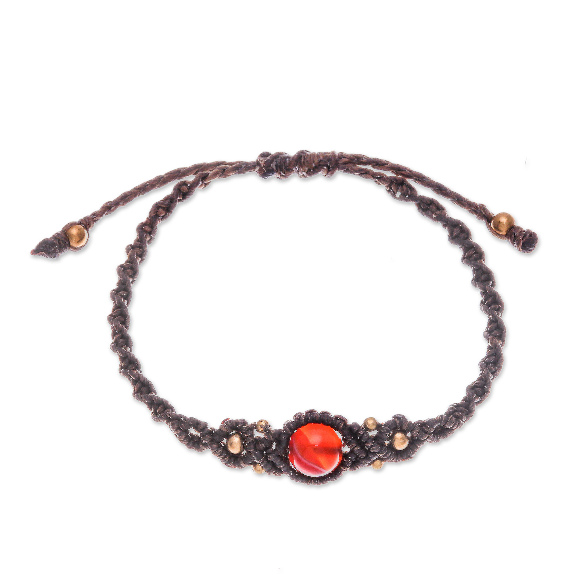 • Carnelian macrame pendant bracelet, 'Sole Courage' - Handwoven Dark Brown Carnelian Macrame Pendant Bracelet (image 2d) thumbail