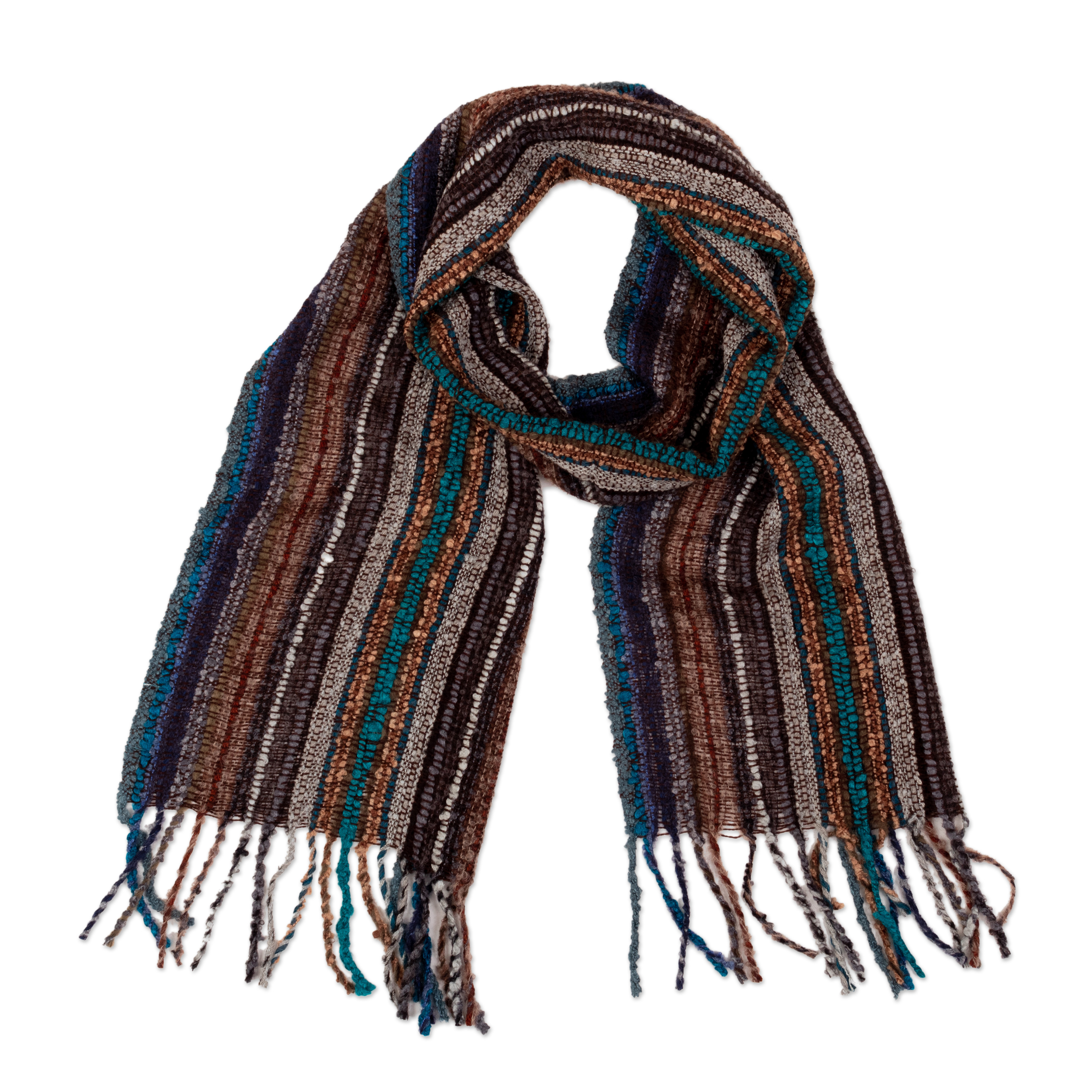 Handwoven Striped Fringed Unisex Baby Alpaca Blend Scarf, 'Andean Colors'