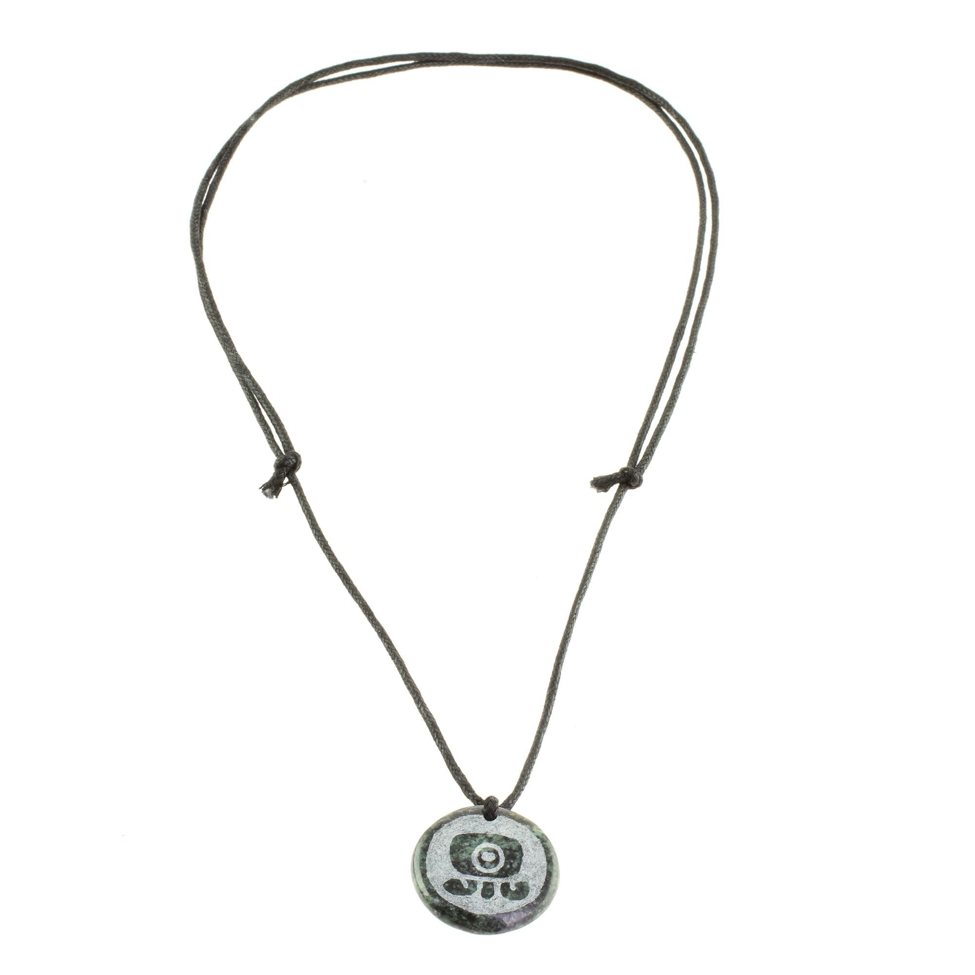 Jade Pendant Necklace of Mayan Figure Toj from Guatemala, 'Toj Medallion'