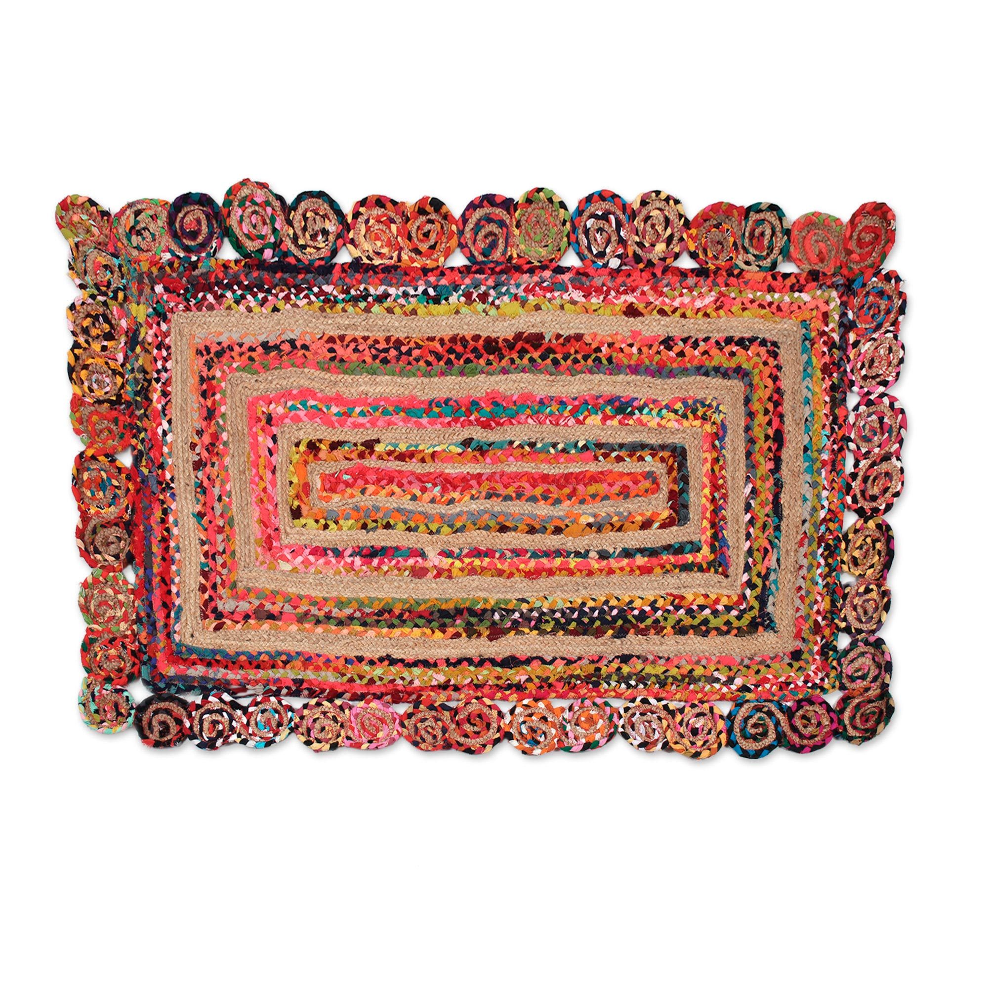 Jute and Recycled Cotton Area Rug from India (3x5), 'Festive Charm'