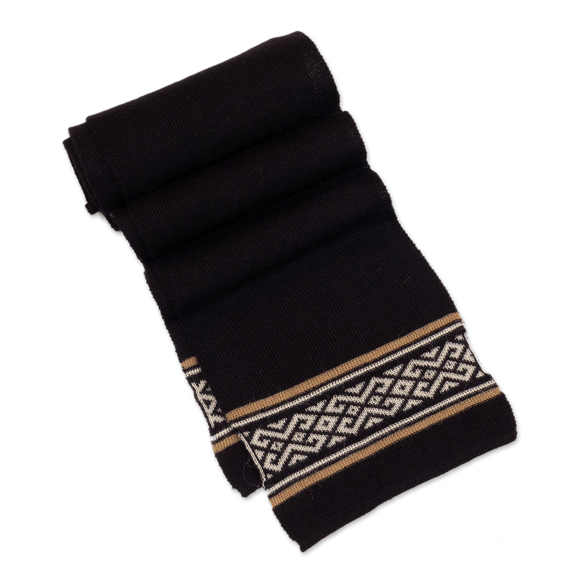 Knit Classic Onyx and Snow White 100% Baby Alpaca Scarf, 'Onyx Andes'
