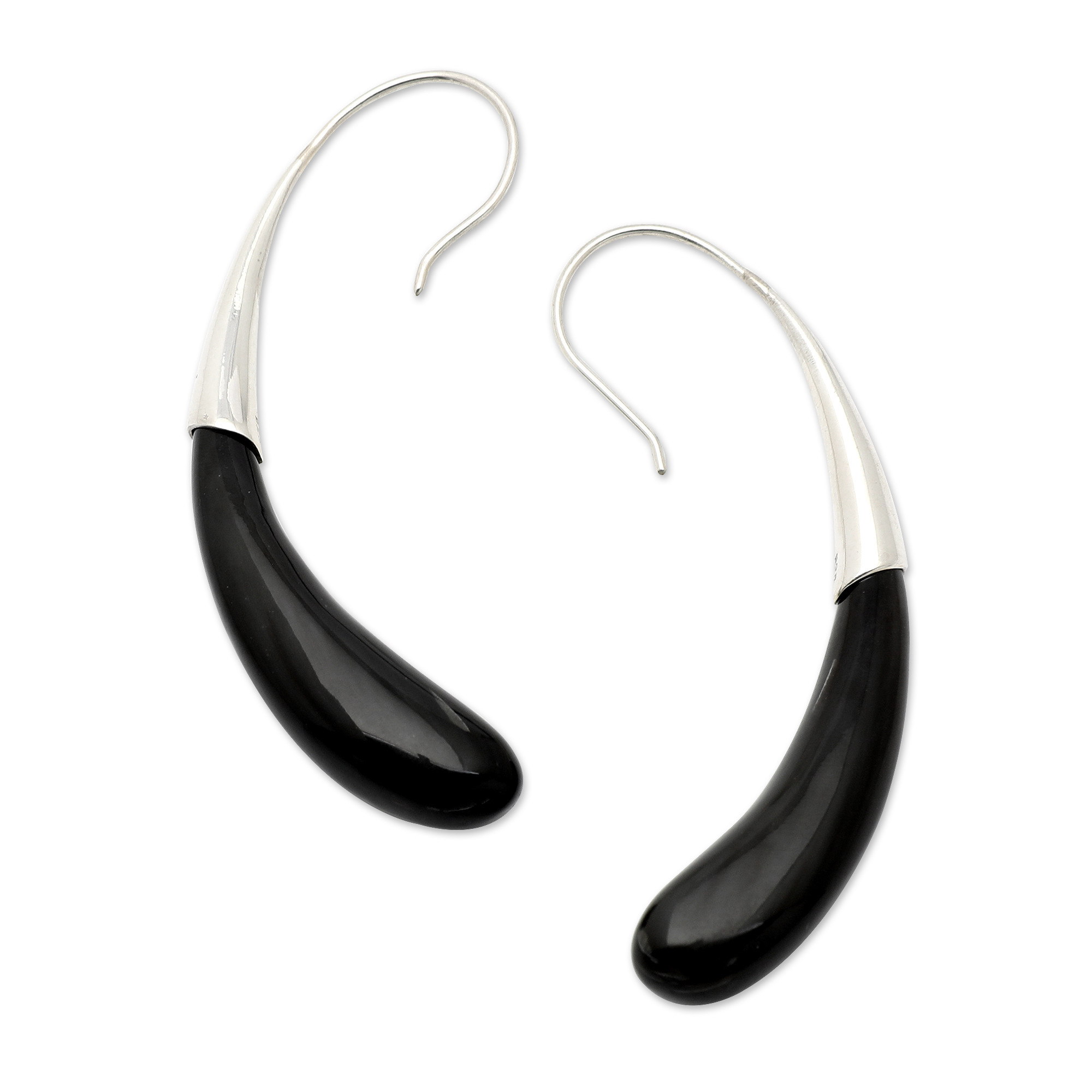 Minimalist High-Polished Sterling Silver Drop Earrings, 'Dark Princess'