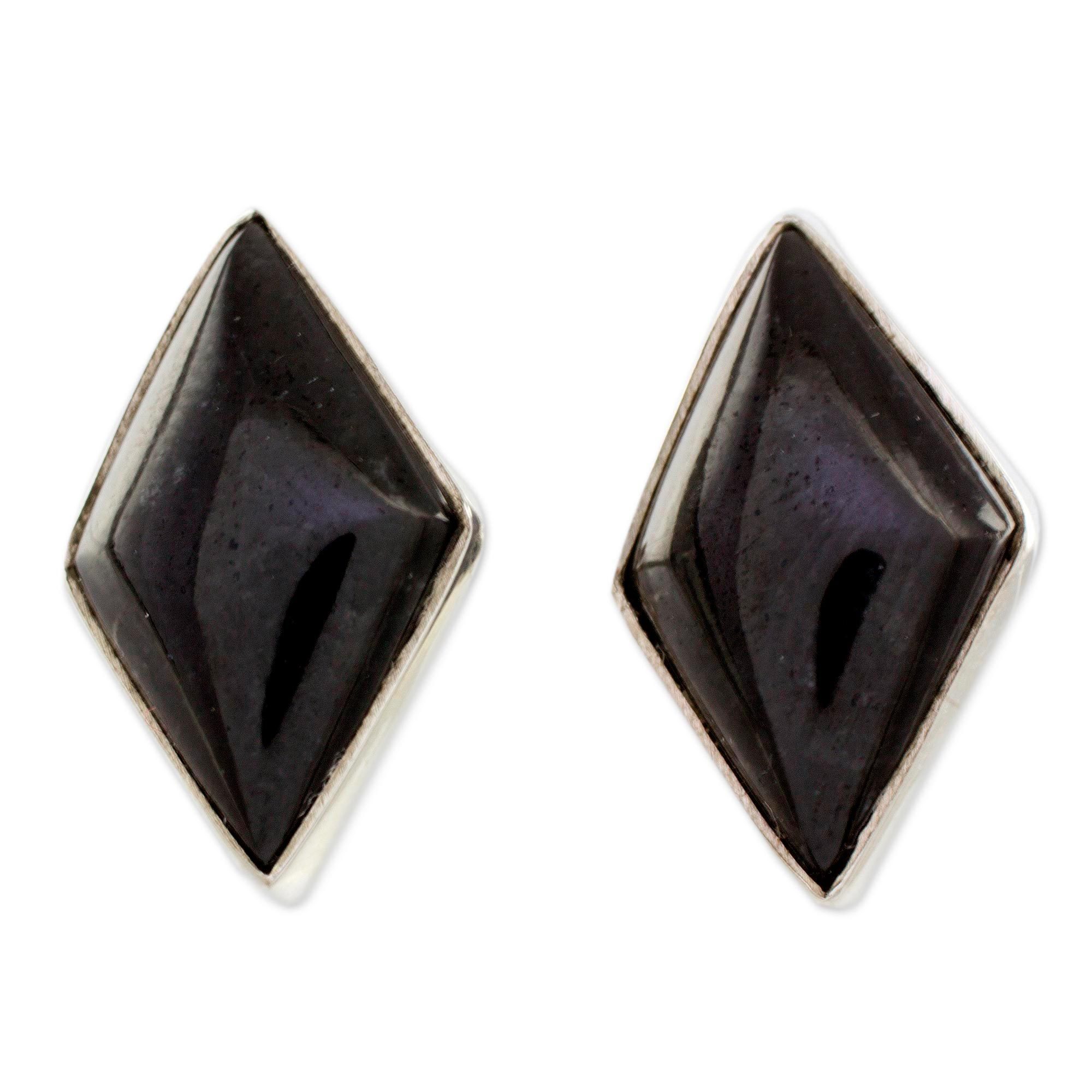 Modern Guatemalan Black Jade Post Earrings, 'Midnight Maya Diamond'