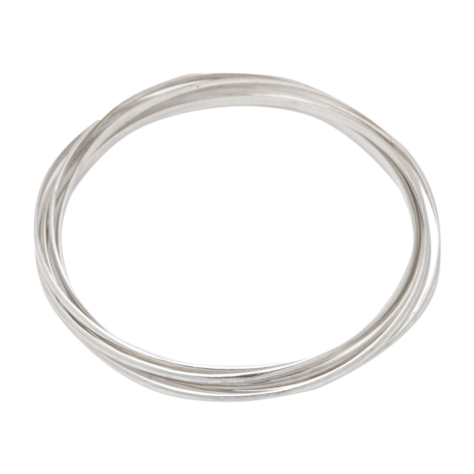 Modern Minimalist Polished Sterling Silver Bangle Bracelet, 'Radiant Hoop'