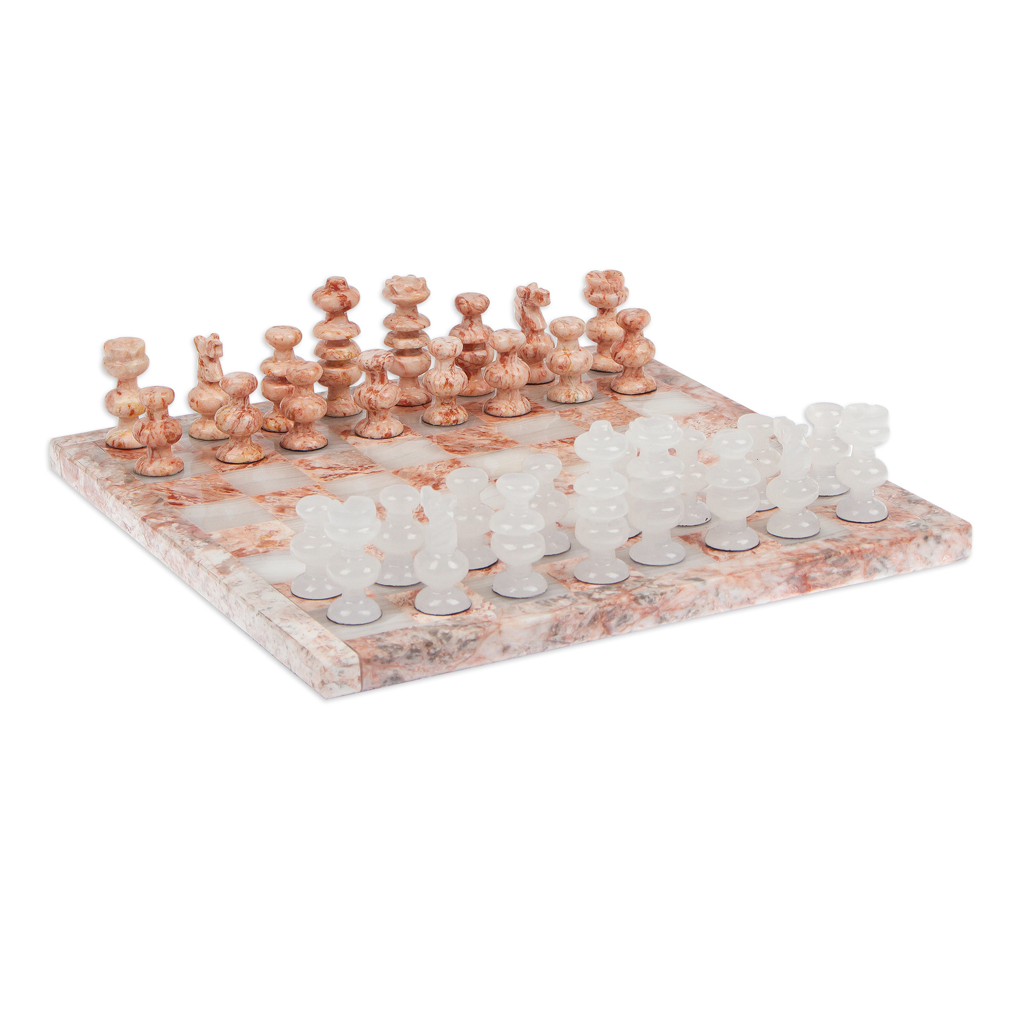 Modern Onyx and Marble Chess Set Carved by Hand in Mexico, 'Exhilarating Challenge'