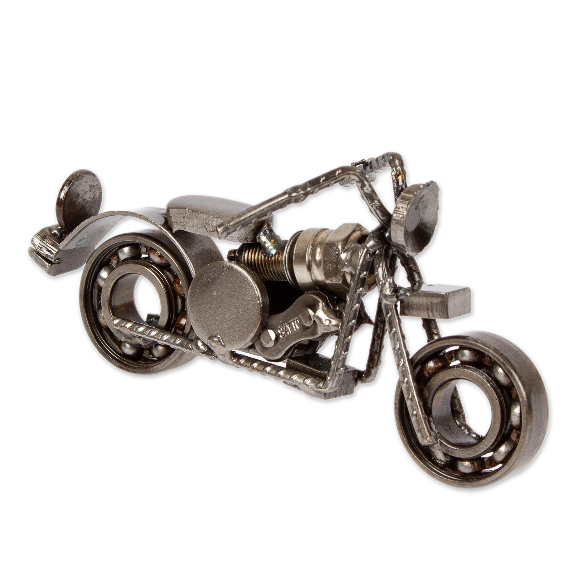 Motorcycle-Shaped Recycled Metal Figurine from Mexico, 'Classic Motorbike'