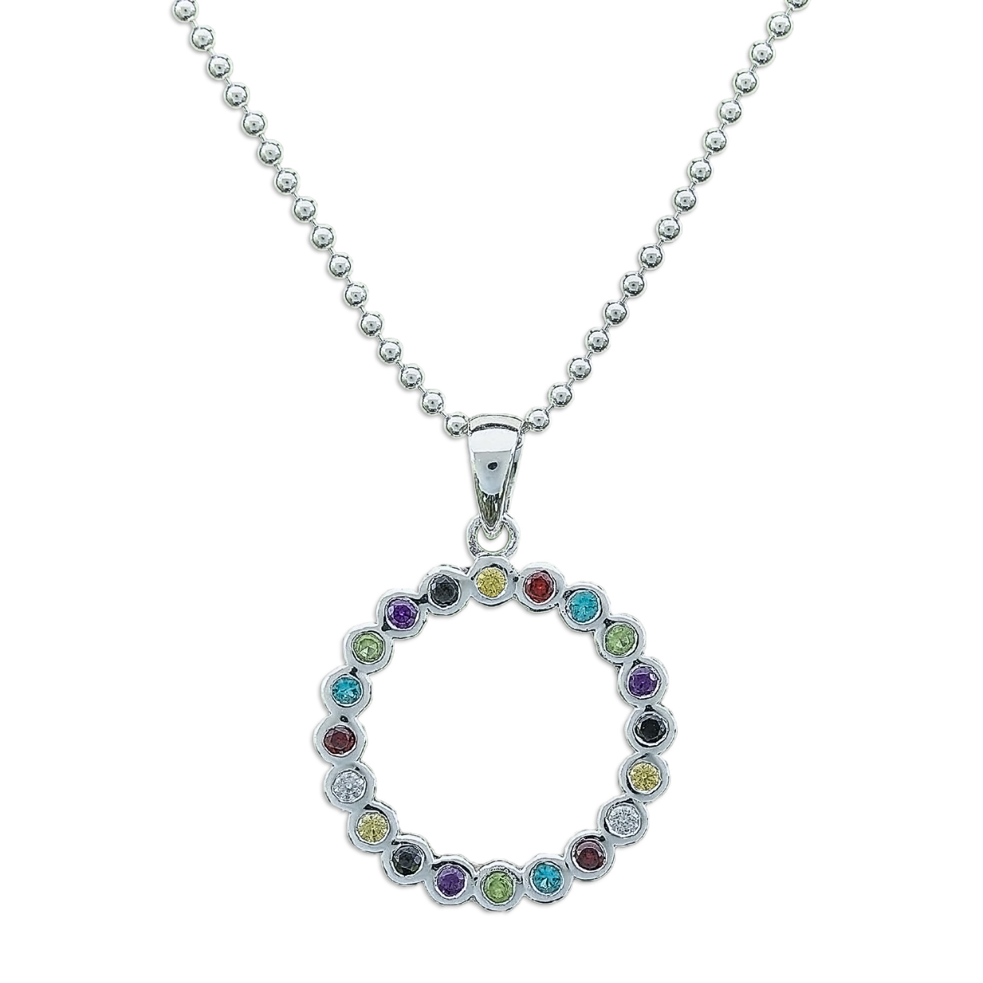 Multi-Gemstone Sterling Silver Circle Pendant Necklace, 'Rainbow Ring'