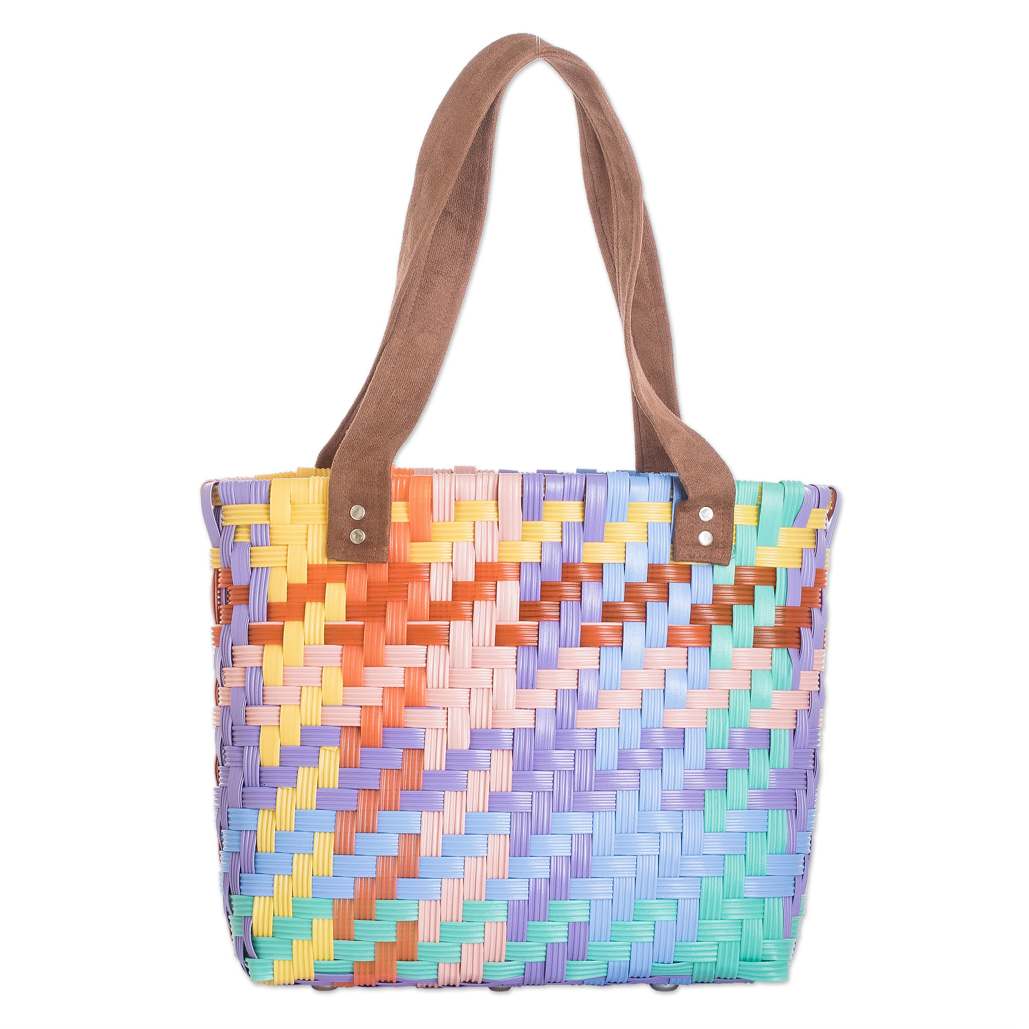 Multicolored Eco-Friendly Handwoven Tote from Guatemala, 'Rainbow Joy'