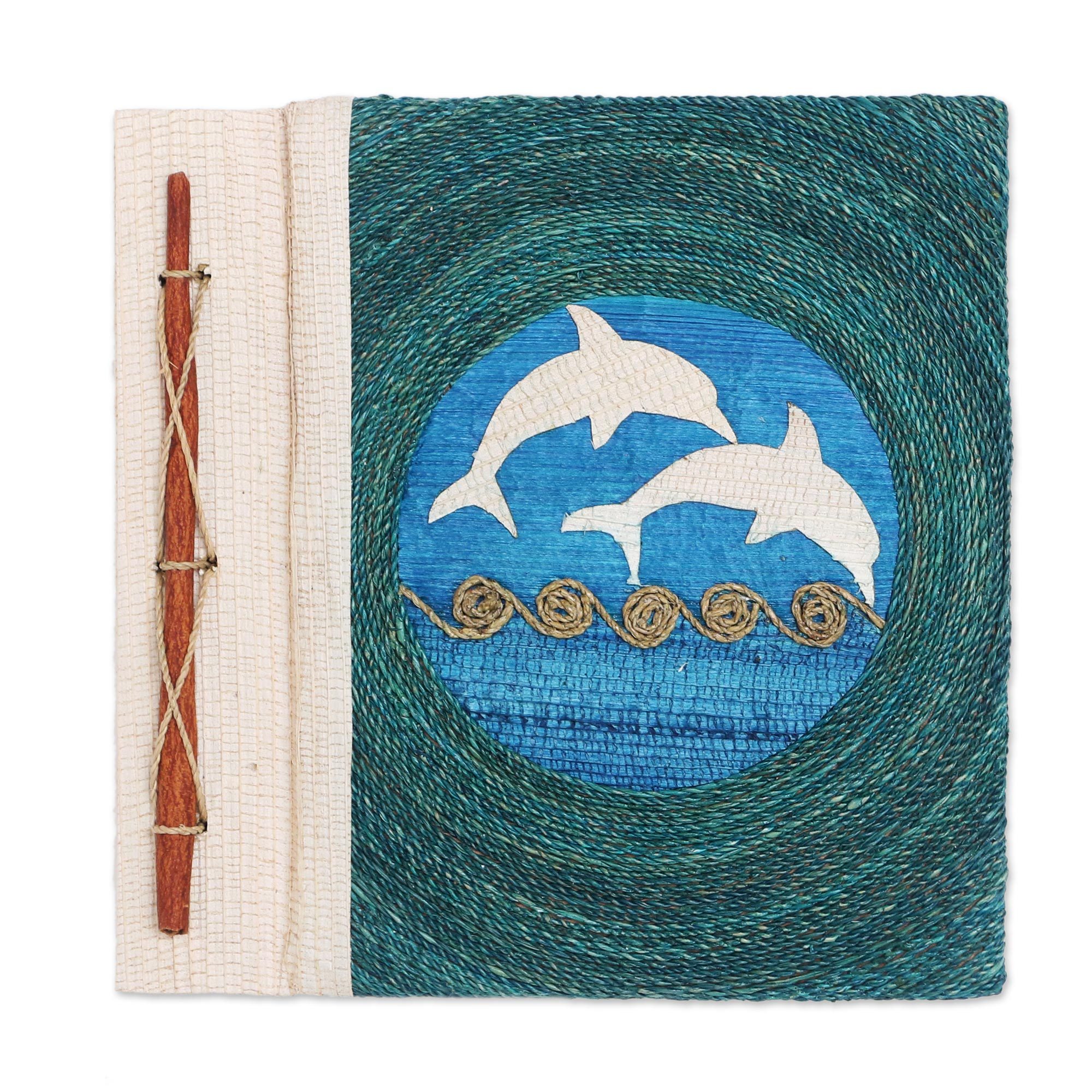 Natural Fiber Dolphin Journal in Blue, 'Pisces Sign in Blue'