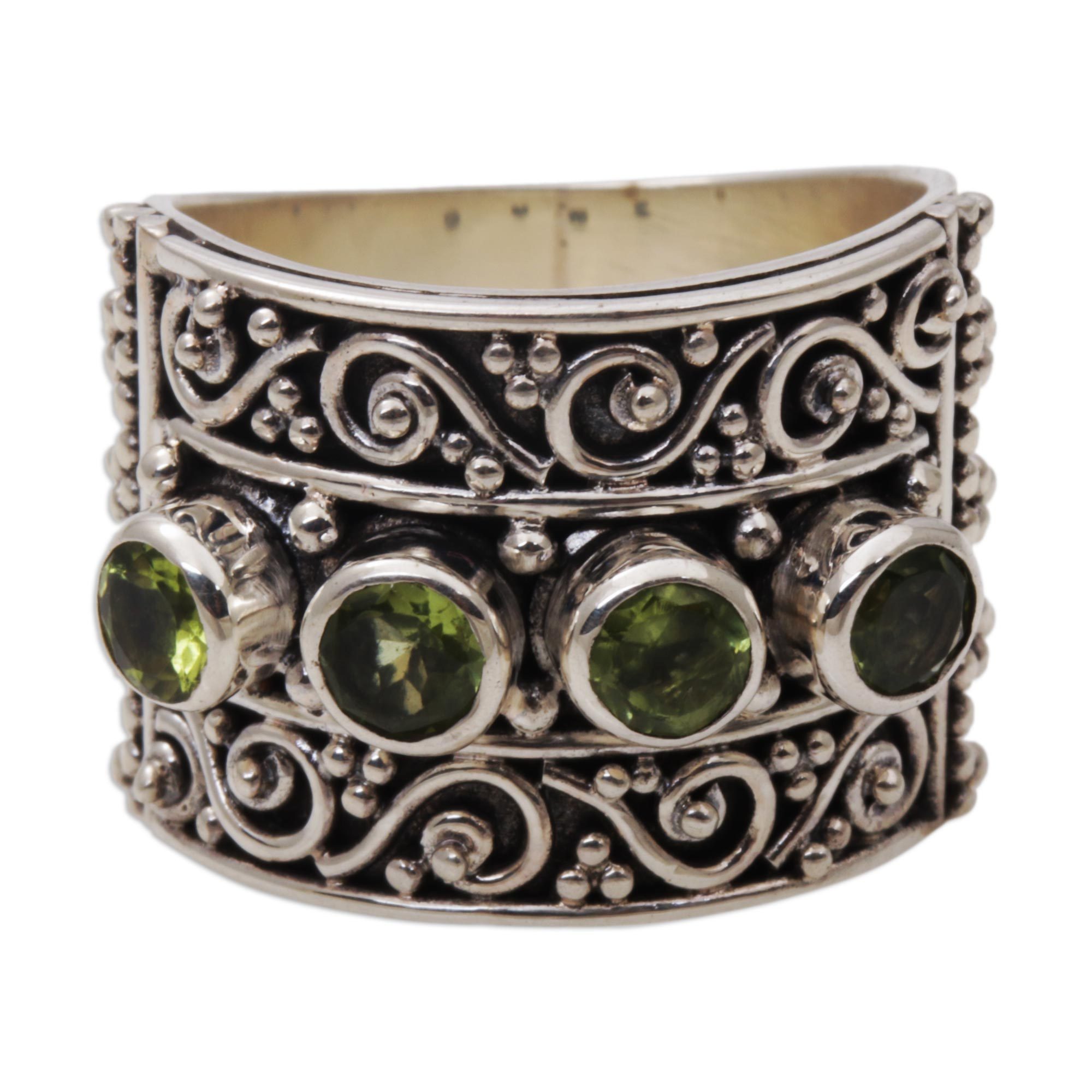 Peridot and 925 Sterling Silver Multi-Stone Ring from Bali, 'Lucky Four'
