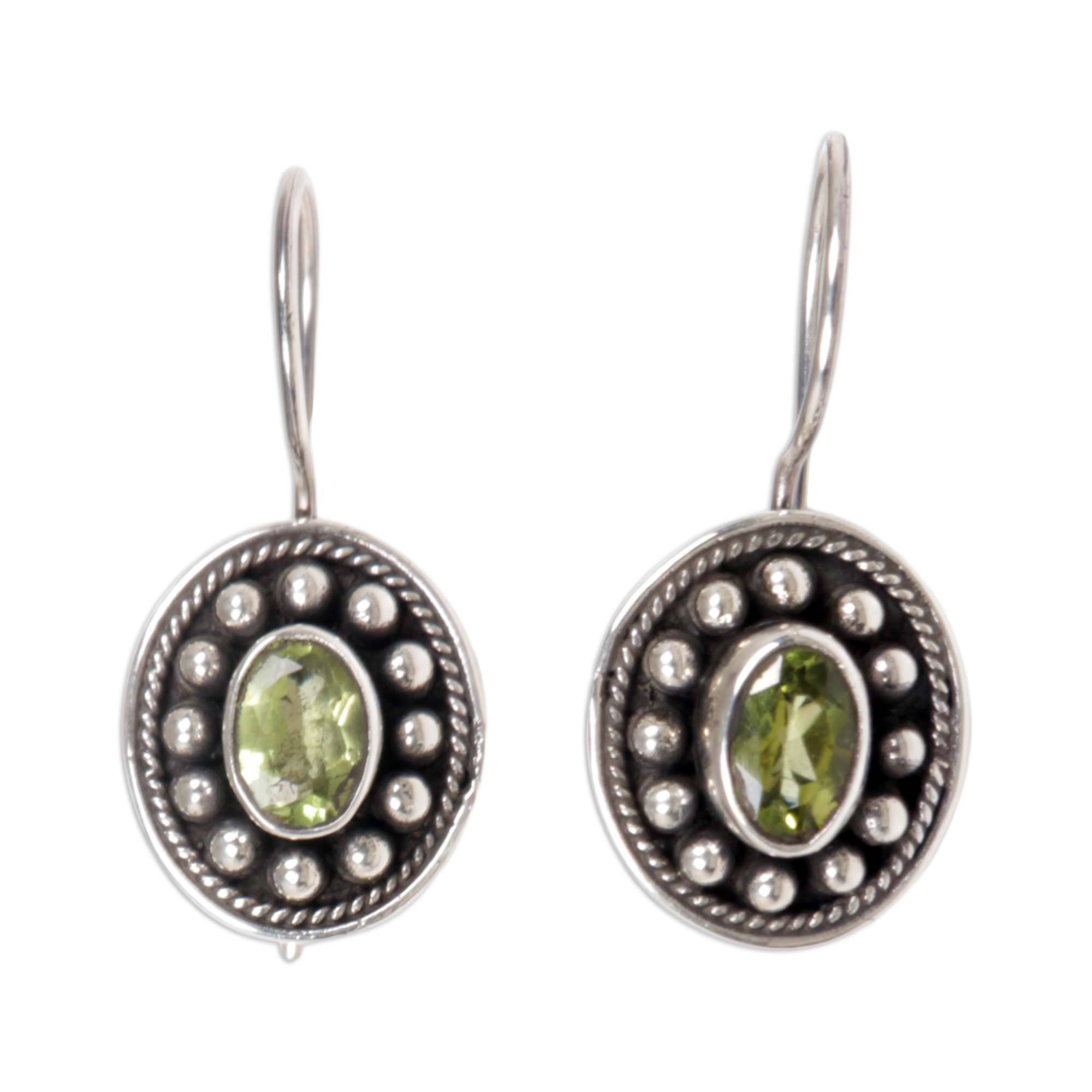 Peridot Sterling Silver Drop Earrings, 'Exquisite Harmony'